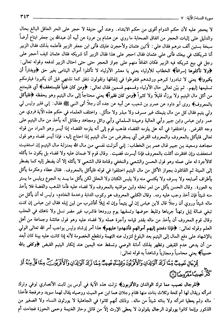 لِلرِّجالِ نَصِيبٌ مِمَّا تَرَكَ الْوالِدانِ وَالْأَقْرَبُونَ وَلِلنِّساءِ نَصِيبٌ مِمَّا تَرَكَ الْوالِدانِ وَالْأَقْرَبُونَ مِمَّا قَلَّ مِنْهُ أَوْ كَثُرَ نَصِيباً مَفْرُوضاً (7)