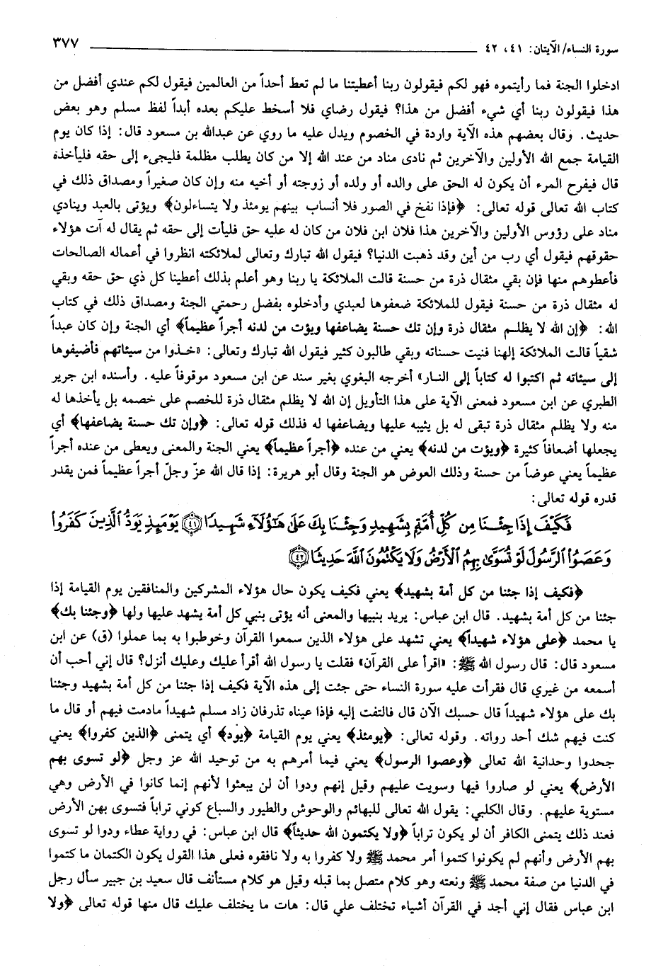 فَكَيْفَ إِذا جِئْنا مِنْ كُلِّ أُمَّةٍ بِشَهِيدٍ وَجِئْنا بِكَ عَلى هؤُلاءِ شَهِيداً (41) يَوْمَئِذٍ يَوَدُّ الَّذِينَ كَفَرُوا وَعَصَوُا الرَّسُولَ لَوْ تُسَوَّى بِهِمُ الْأَرْضُ وَلا يَكْتُمُونَ اللَّهَ حَدِيثاً (42)