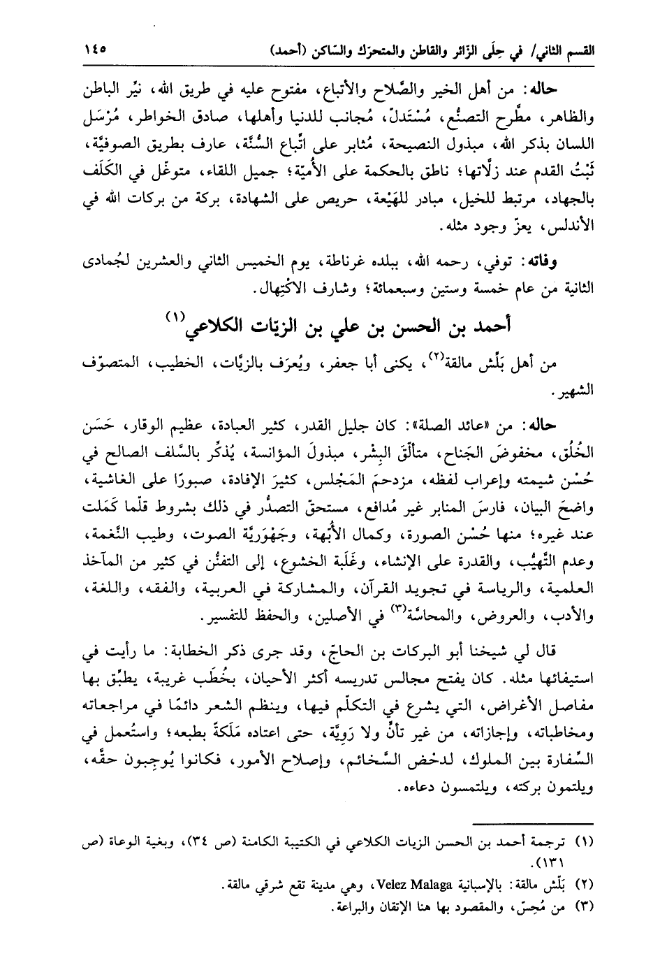 من أهل بلّش مالقة «2» ، يكنى أبا جعفر، ويعرف بالزيّات، الخطيب، المتصوّف الشهير.