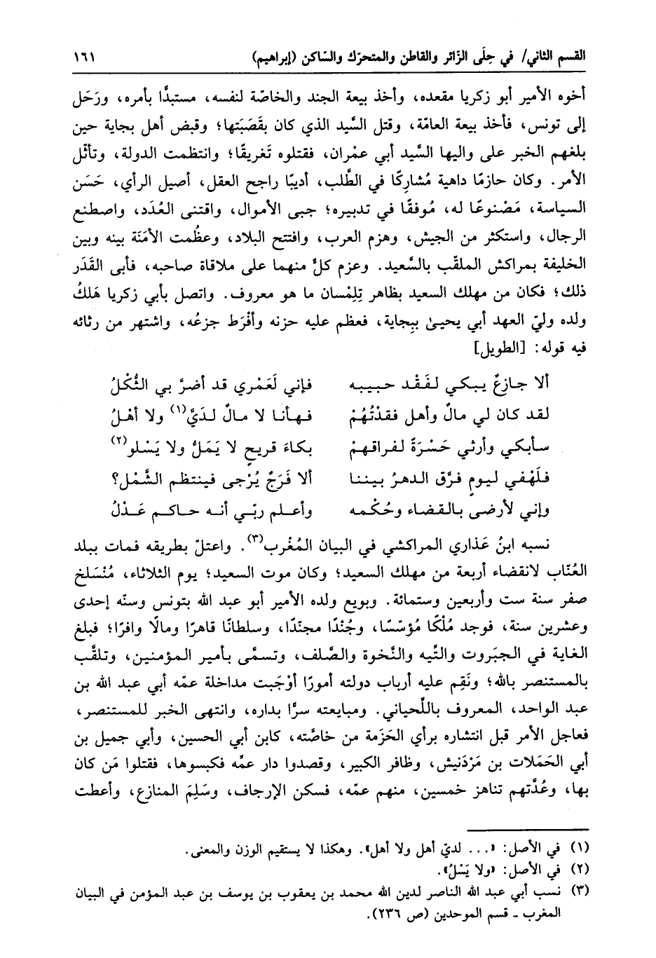 سأبكي وأرثي حسرة لفراقهم ... بكاء قريح لا يملّ ولا يسلو «2»