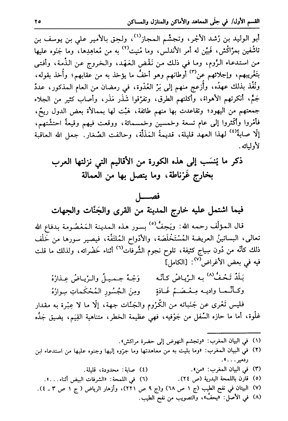 ذكر ما ينسب إلى هذه الكورة من الأقاليم التي نزلتها العرب بخارج غرناطة، وما يتصل بها من العمالة