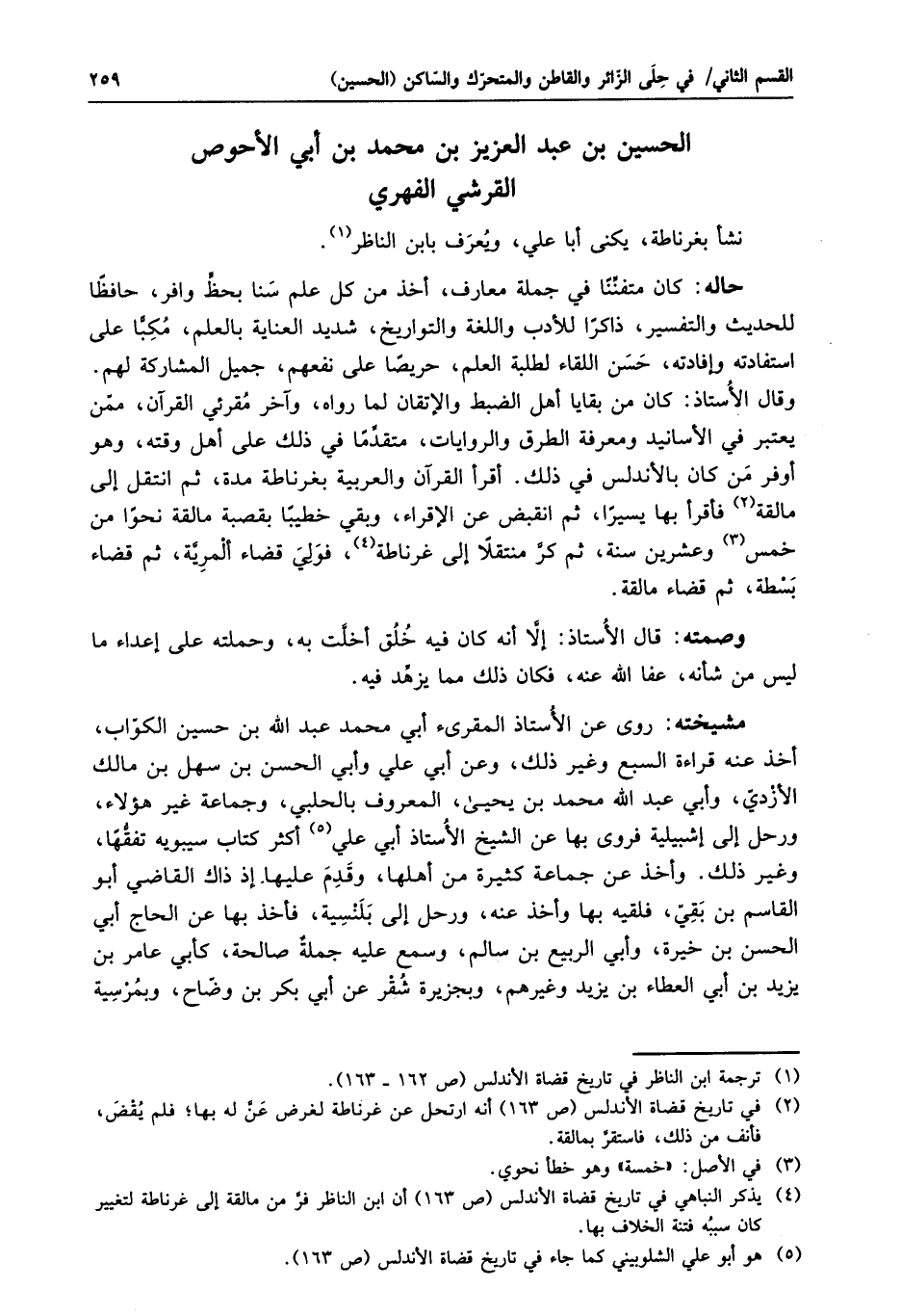 نشأ بغرناطة، يكنى أبا علي، ويعرف بابن الناظر «1» .