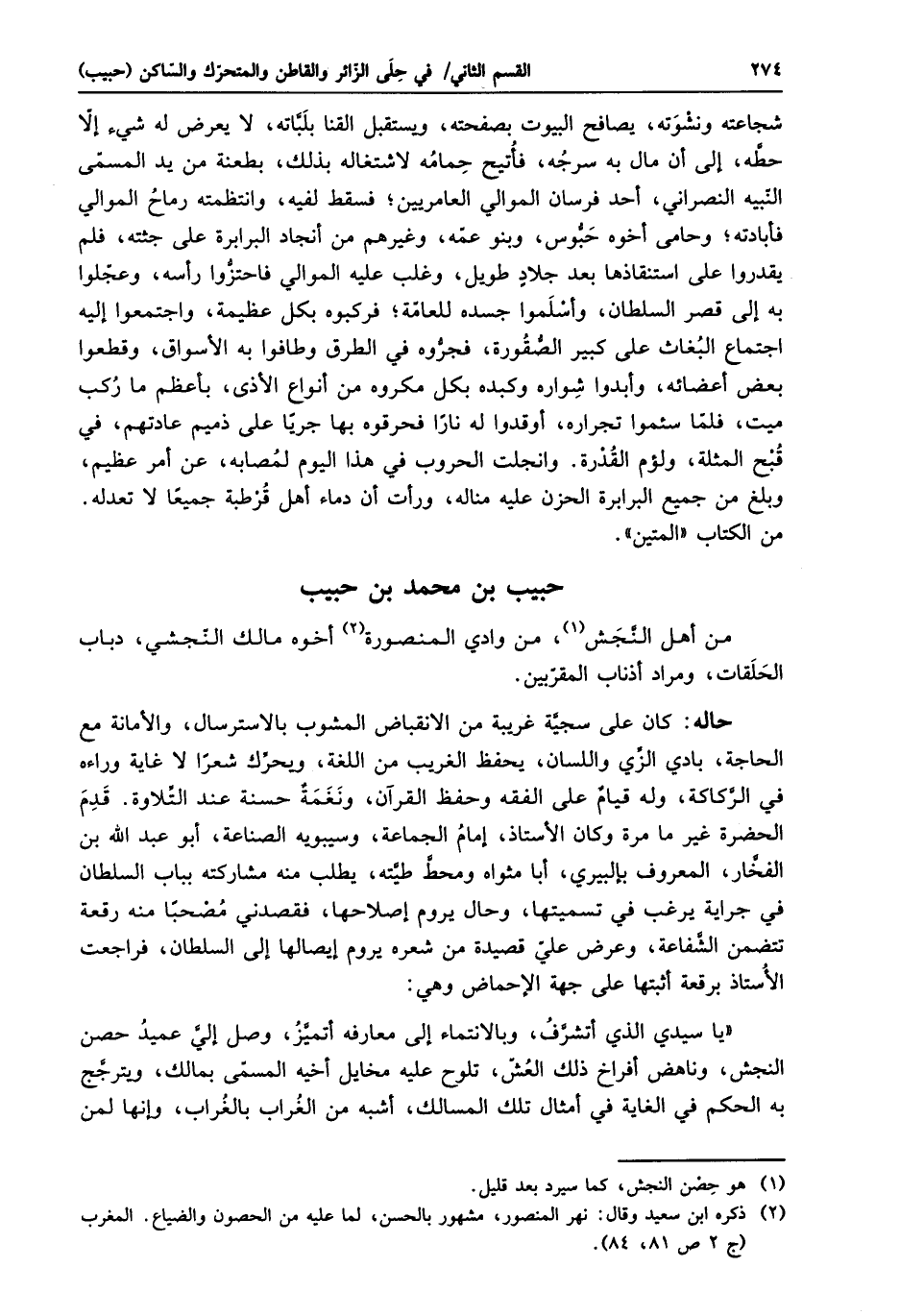 من أهل النّجش «1» ، من وادي المنصورة «2» أخوه مالك النّجشي، دباب الحلقات، ومراد أذناب المقرّبين.