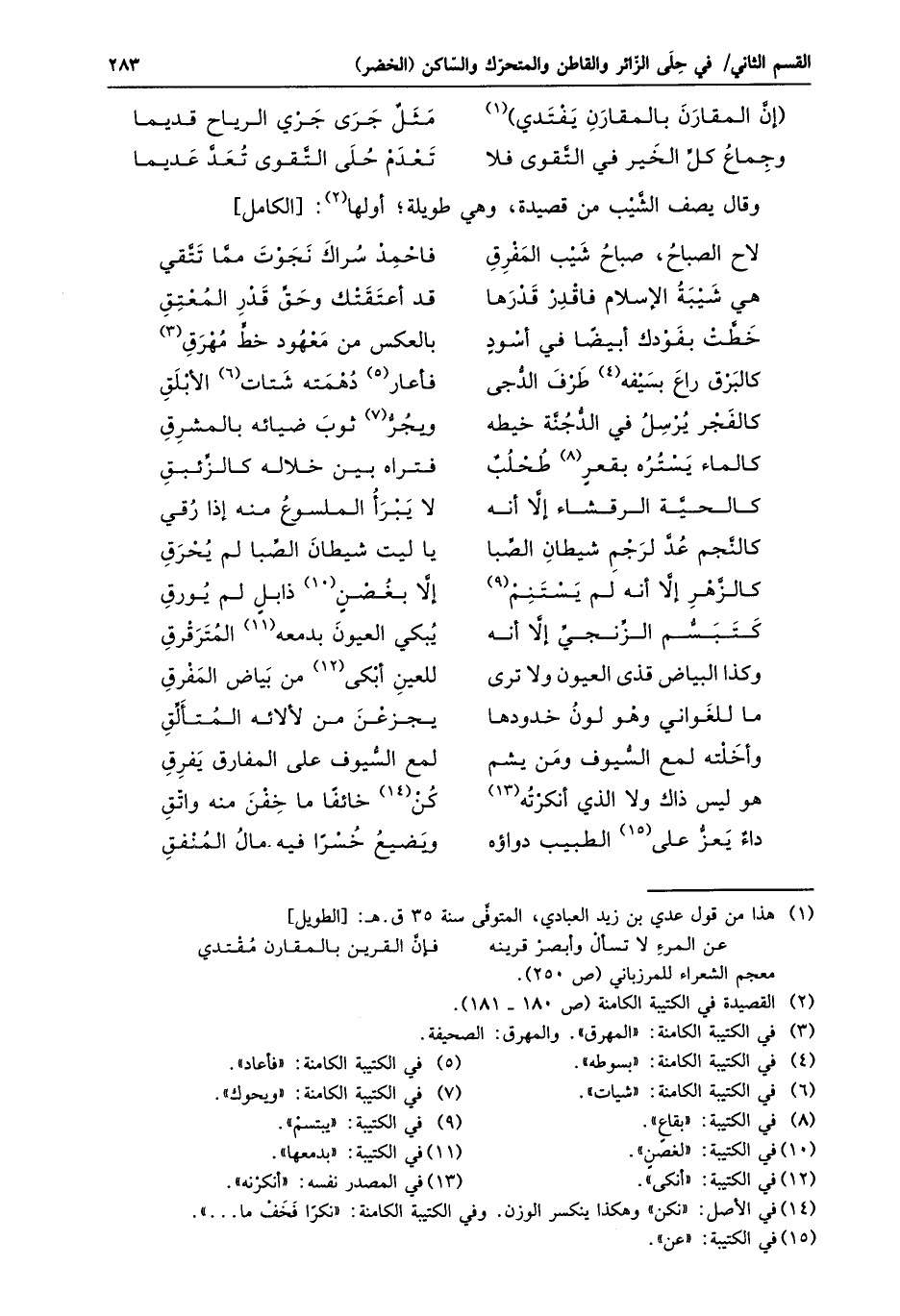 وقال يصف الشّيب من قصيدة، وهي طويلة؛ أولها «2» : [الكامل]
