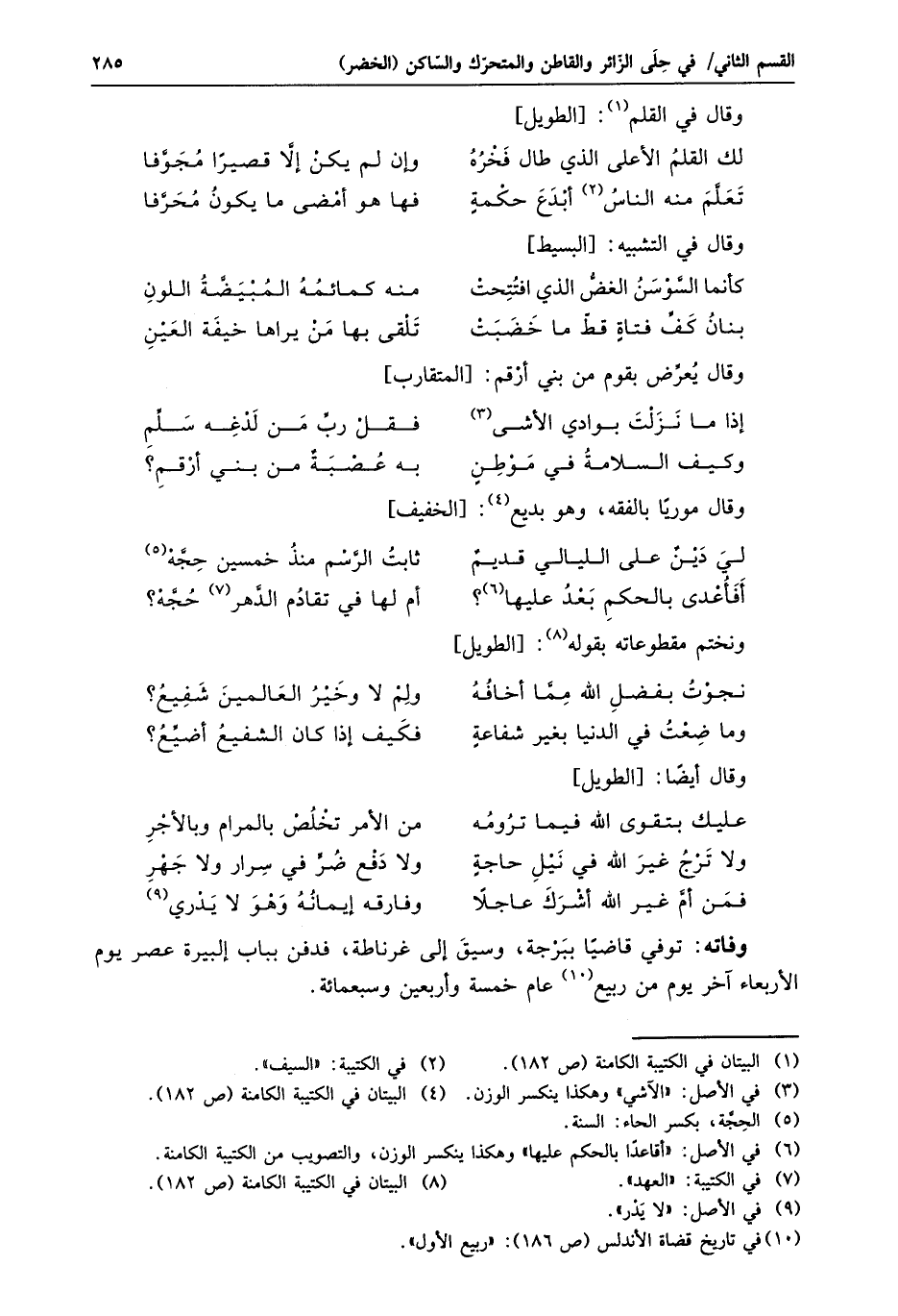 وفاته: توفي قاضيا ببرجة، وسيق إلى غرناطة، فدفن بباب إلبيرة عصر يوم الأربعاء آخر يوم من ربيع «10» عام خمسة وأربعين وسبعمائة.