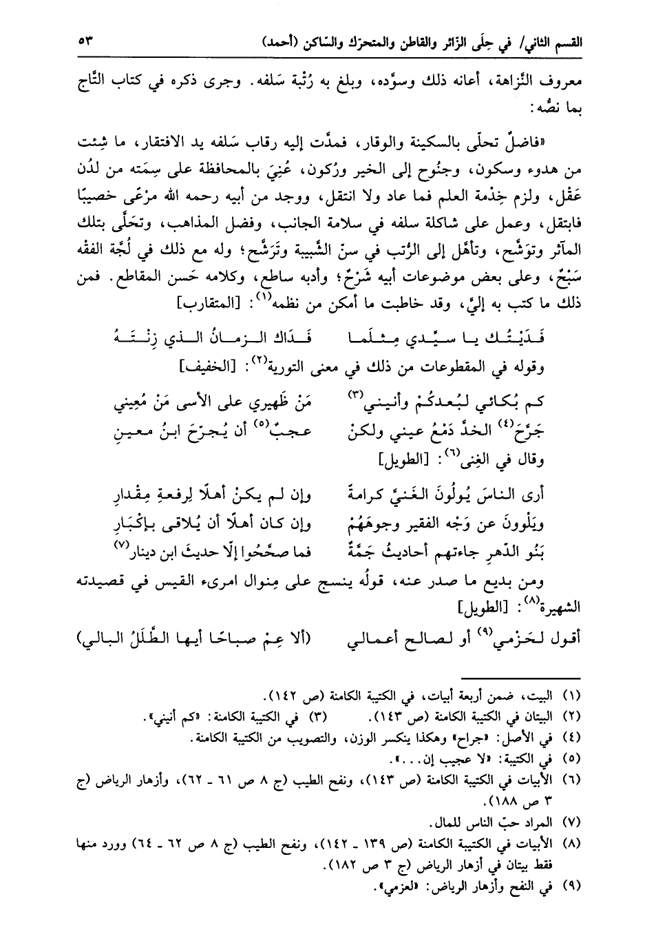 أقول لحزمي «9» أو لصالح أعمالي ... (ألا عم صباحا أيها الطّلل البالي)