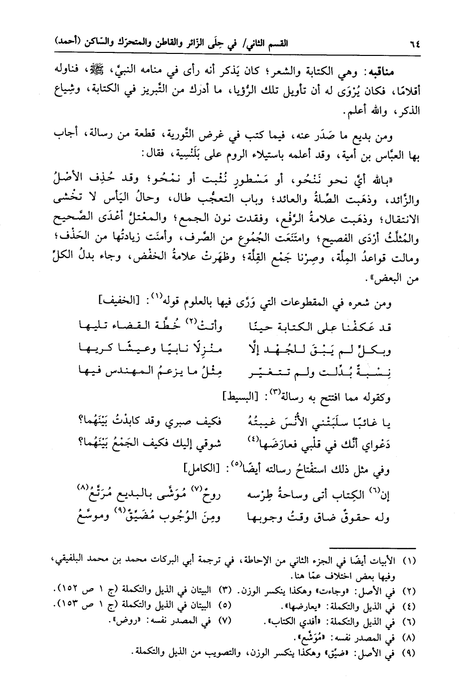 وفي مثل ذلك استفتاح رسالته أيضا «5» : [الكامل]
