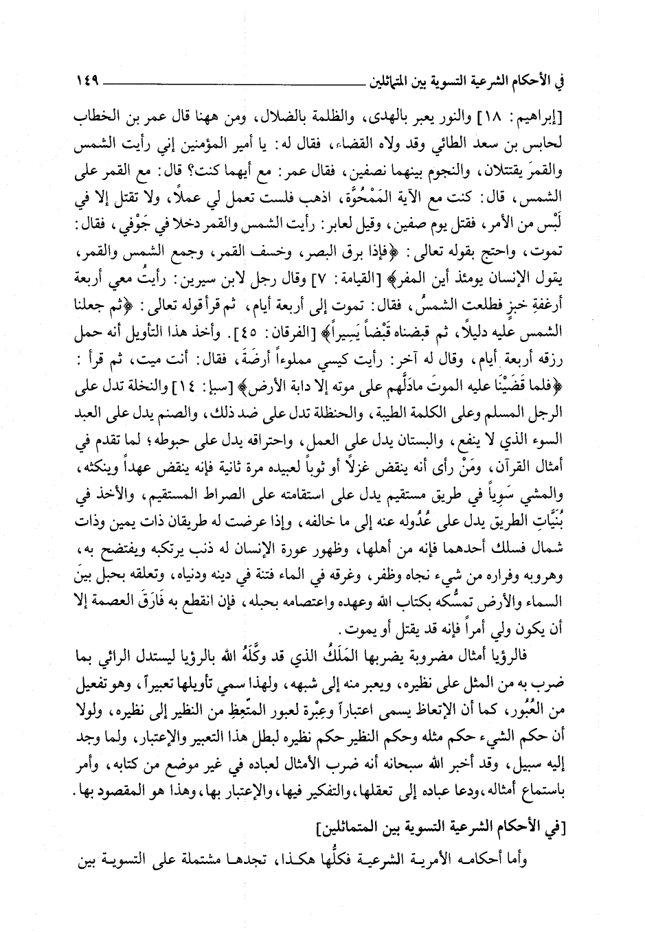 [فِي الْأَحْكَامِ الشَّرْعِيَّةِ التَّسْوِيَةُ بَيْنَ الْمُتَمَاثِلَيْنِ]