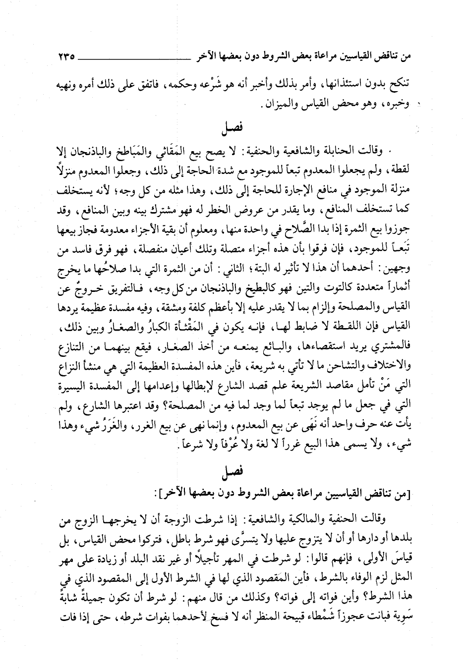 [فَصْلٌ مِنْ تَنَاقُضِ الْقِيَاسِيِّينَ مُرَاعَاةُ بَعْضِ الشُّرُوطِ دُونَ بَعْضِهَا الْآخَرِ]