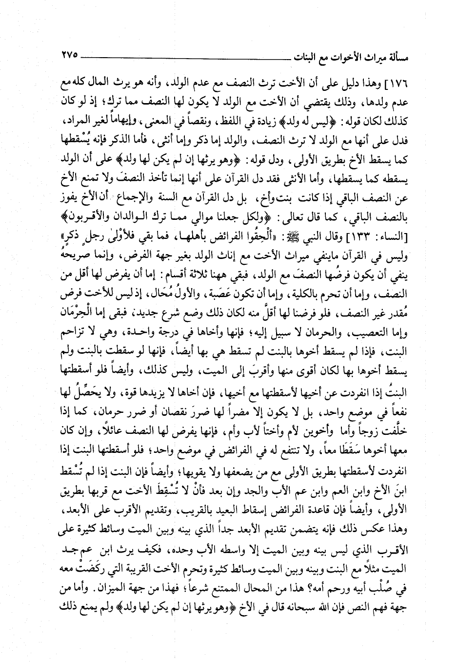 وَأَمَّا مِنْ جِهَةِ فَهْمِ النَّصِّ فَإِنَّ اللَّهَ - سُبْحَانَهُ - قَالَ فِي الْأَخِ: {وَهُوَ يَرِثُهَا إِنْ لَمْ يَكُنْ لَهَا وَلَدٌ} [النساء: 176] وَلَمْ يَمْنَعْ ذَلِكَ