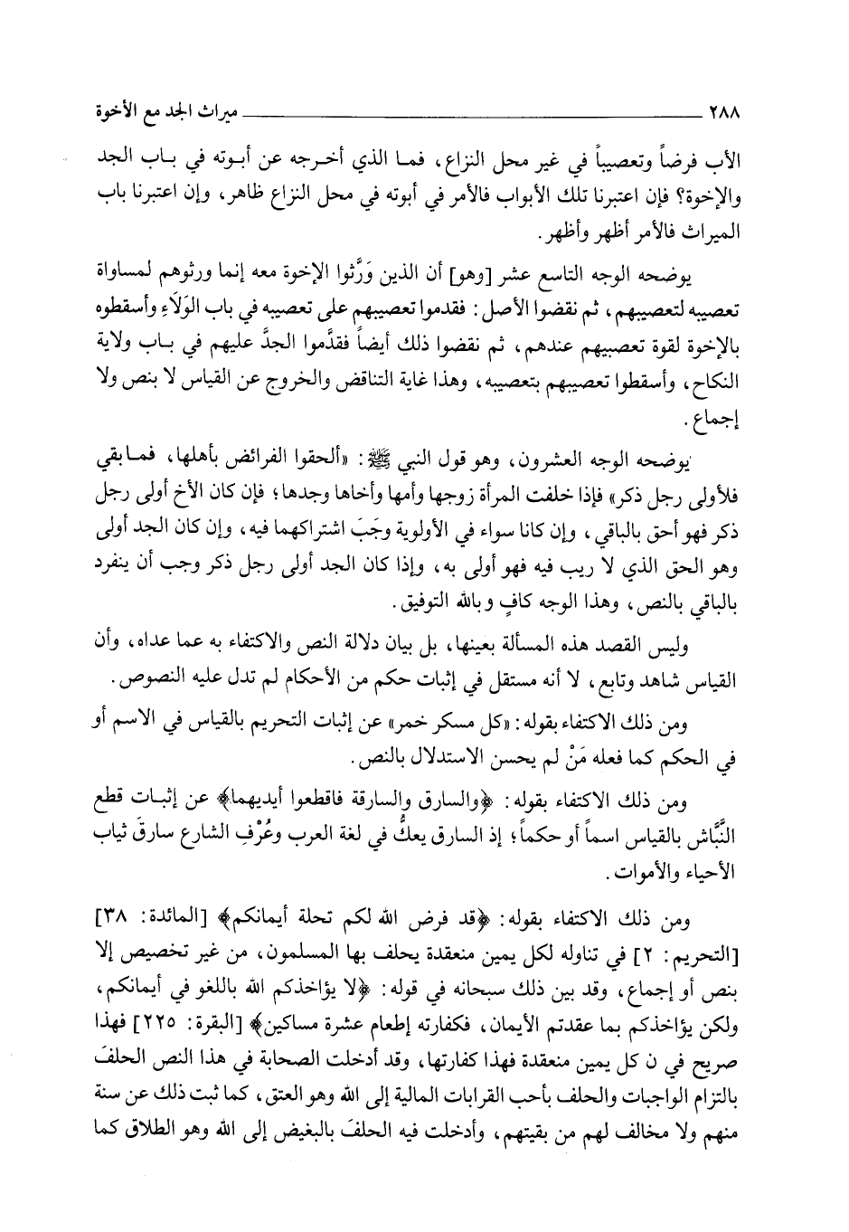 الْأَبِ فَرْضًا وَتَعْصِيبًا فِي غَيْرِ مَحَلِّ النِّزَاعِ، فَمَا الَّذِي أَخْرَجَهُ عَنْ أُبُوَّتِهِ فِي بَابِ الْجَدِّ وَالْإِخْوَةِ؟ فَإِنْ اعْتَبَرْنَا تِلْكَ الْأَبْوَابَ فَالْأَمْرُ فِي أُبُوَّتِهِ فِي مَحَلِّ النِّزَاعِ ظَاهِرٌ، وَإِنْ اعْتَبَرْنَا بَابَ الْمِيرَاثِ فَالْأَمْرُ أَظْهَرُ وَأَظْهَرُ.