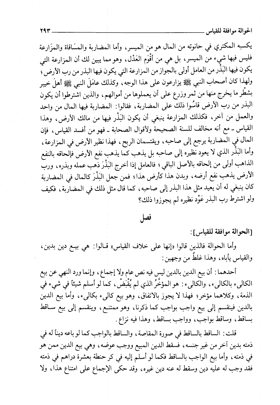 [فَصَلِّ الْحَوَالَةُ مُوَافِقَةٌ لِلْقِيَاسِ]