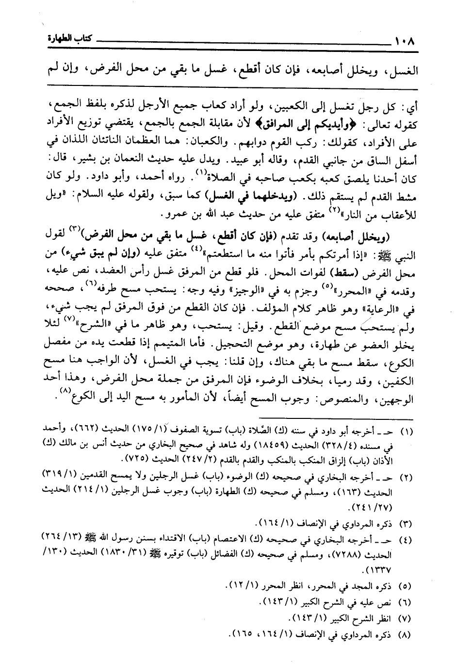 وَالْكَعْبَانِ: هُمَا الْعَظْمَانِ النَّاتِئَانِ اللَّذَانِ فِي أَسْفَلِ السَّاقِ مِنْ جَانِبَيِ الْقَدَمِ، وَقَالَهُ أَبُو عُبَيْدٍ، وَيَدُلُّ عَلَيْهِ حَدِيثُ النُّعْمَانِ بْنِ بَشِيرٍ، قَالَ: «كَانَ أَحَدُنَا يُلْصِقُ كَعْبَهُ بِكَعْبِ صَاحِبِهِ فِي الصَّلَاةِ» . رَوَاهُ أَحْمَدُ، وَأَبُو دَاوُدَ، وَلَوْ كَانَ مُشْطُ الْقَدَمِ لَمْ يَسْتَقِمْ ذَلِكَ (وَيُدْخِلَهُمَا فِي الْغَسْلِ) كَمَا سَبَقَ، وَلِقَوْلِهِ - عَلَيْهِ السَّلَامُ -: «وَيْلٌ لِلْأَعْقَابِ مِنَ النَّارِ» مُتَّفَقٌ عَلَيْهِ مِنْ حَدِيثِ عَبْدِ اللَّهِ بْنِ عَمْرٍو.