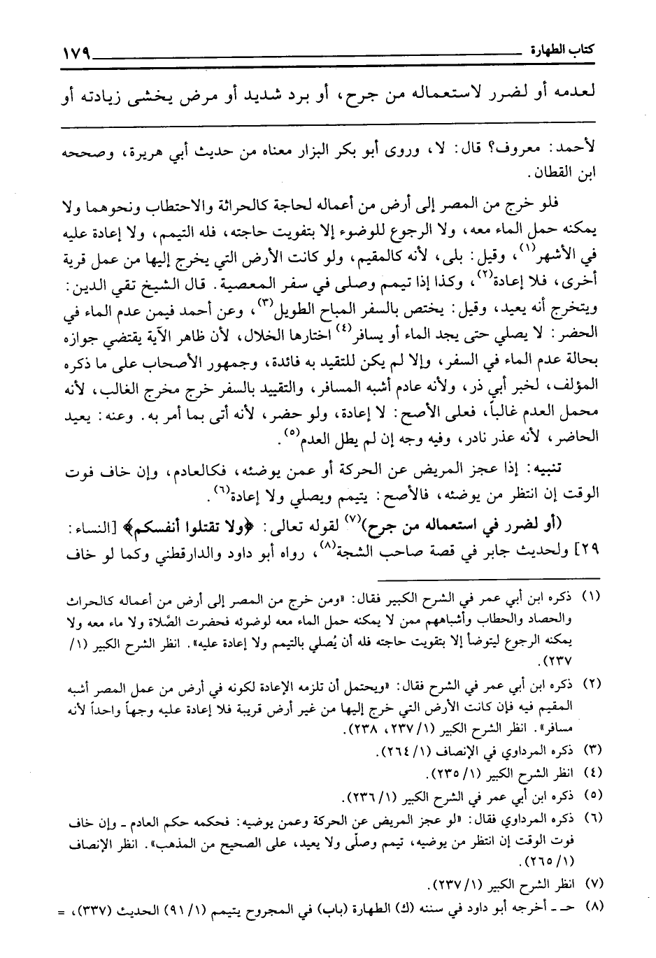 لِعَدَمِهِ أَوْ لِضَرَرٍ لِاسْتِعْمَالِهِ مِنْ جُرْحٍ، أَوْ بَرْدٍ شَدِيدٍ أَوْ مَرَضٍ يَخْشَى زِيَادَتَهُ أَوْ
