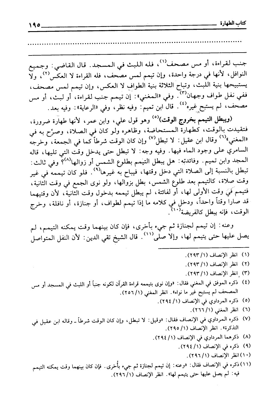 (وَيَبْطُلُ التَّيَمُّمُ بِخُرُوجِ الْوَقْتِ) وَهُوَ قَوْلُ عَلِيٍّ، وَابْنِ عُمَرَ، لِأَنَّهَا طَهَارَةُ ضَرُورَةٍ، فَتَقَيَّدَتْ بِالْوَقْتِ، كَطَهَارَةِ الْمُسْتَحَاضَةِ، وَظَاهِرُهُ، وَلَوْ كَانَ فِي الصَّلَاةِ، وَصَرَّحَ بِهِ فِي " الْمُغْنِي " وَقَالَ ابْنُ عَقِيلٍ: لَا تَبْطُلُ، وَإِنْ كَانَ الْوَقْتُ شَرْطًا كَمَا فِي الْجُمُعَةِ، وَخَرَّجَهُ السَّامِرِيُّ عَلَى وُجُودِ الْمَاءِ فِيهَا، وَفِيهِ وَجْهٌ: لَا تَبْطُلُ حَتَّى يَدْخُلَ وَقْتُ الَّتِي تَلِيهَا قَالَهُ الْمَجْدُ، وَابْنُ تَمِيمٍ، وَفَائِدَتُهُ: هَلْ يَبْطُلُ التَّيَمُّمُ بِطُلُوعِ الشَّمْسِ أَوْ زَوَالِهَا، وَفِي ثَالِثٍ: تَبْطُلُ بِالنِّسْبَةِ إِلَى الصَّلَاةِ الَّتِي دَخَلَ وَقْتُهَا، فَيُبَاحُ بِهِ غَيْرُهَا. فَلَوْ كَانَ تَيَمُّمُهُ في غير وَقْتَ صَلَاةٍ، كَالتَّيَمُّمِ بَعْدَ طُلُوعِ الشَّمْسِ بَطَلَ بِزَوَالِهَا، وَلَوْ نَوَى الْجَمْعَ فِي وَقْتِ الثَّانِيَةِ، فَتَيَمَّمَ فِي وَقْتِ الْأُولَى لَهَا، أَوْ لِفَائِتَةٍ، لَمْ يَبْطُلْ تَيَمُّمُهُ بِدُخُولِ وَقْتِ الثَّانِيَةِ، لِأَنَّ وَقْتَيْهِمَا قَدْ صَارَا وَقْتًا وَاحِدًا، وَدَخَلَ فِي كَلَامِهِ مَا إِذَا تَيَمَّمَ لِطَوَافٍ أَوْ جِنَازَةٍ أَوْ نَافِلَةٍ، وَخَرَجَ الْوَقْتُ، فَإِنَّهُ يَبْطُلُ كَالْفَرِيضَةِ.