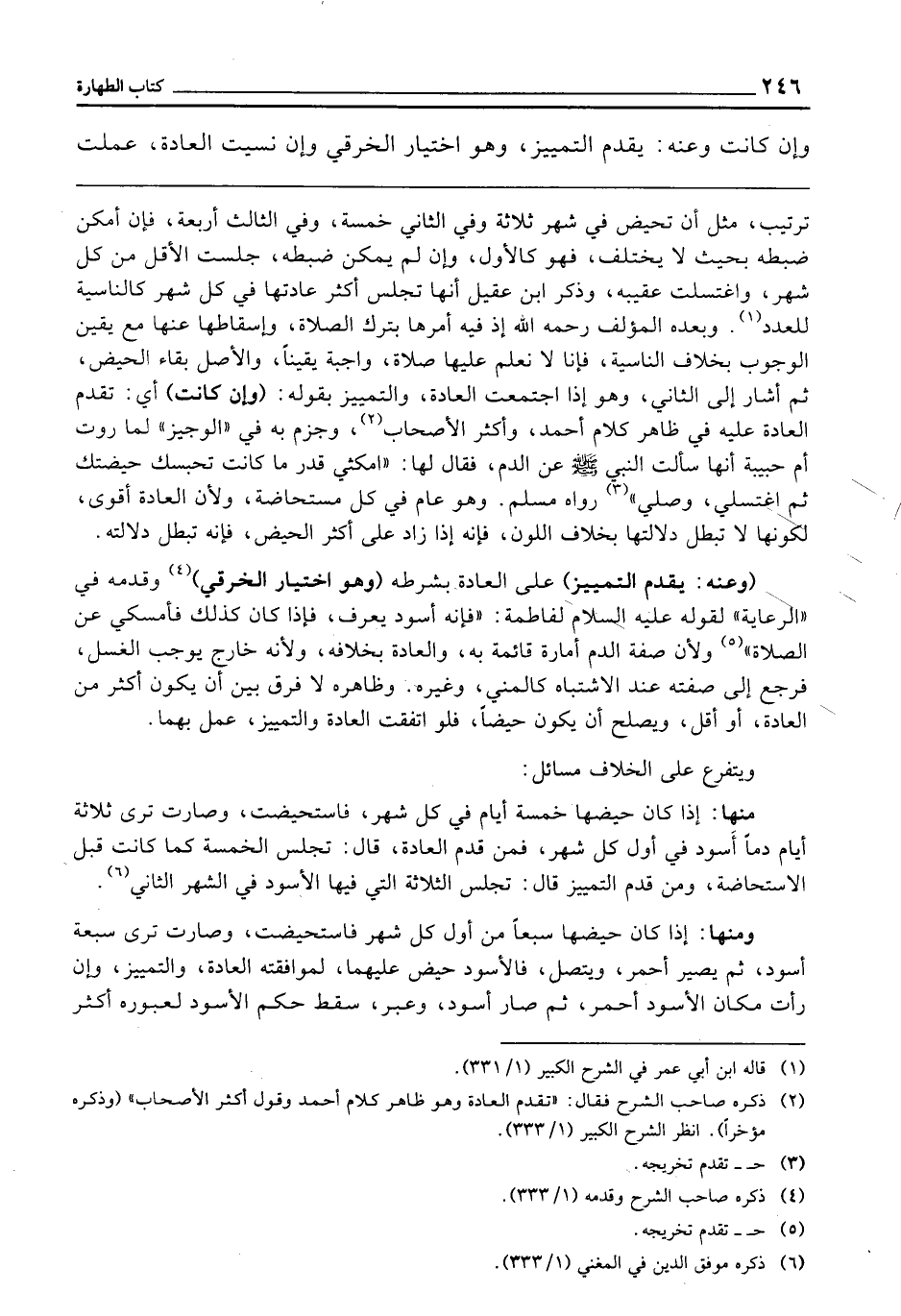 (وَعَنْهُ: يُقَدَّمُ التَّمْيِيزُ) عَلَى الْعَادَةِ بِشَرْطِهِ (وَهُوَ اخْتِيَارُ الْخِرَقِيِّ) وَقَدَّمَهُ فِي " الرِّعَايَةِ " لِقَوْلِهِ - عَلَيْهِ السَّلَامُ - لِفَاطِمَةَ: «فَإِنَّهُ أَسْوَدُ يُعْرَفُ، فَإِذَا كَانَ كَذَلِكَ فَأَمْسِكِي عَنِ الصَّلَاةِ» وَلِأَنَّ صِفَةَ الدَّمِ أَمَارَةٌ قَائِمَةٌ بِهِ، وَالْعَادَةَ بِخِلَافِهِ، وَلِأَنَّهُ خَارِجٌ يُوجِبُ الْغُسْلَ، فَرَجَعَ إِلَى صِفَتِهِ عِنْدَ الِاشْتِبَاهِ كَالْمَنِيِّ، وَغَيْرِهِ، وَظَاهِرُهُ لَا فَرْقَ بَيْنَ أَنْ يَكُونَ أَكْثَرَ مِنَ الْعَادَةِ أَوْ أَقَلَّ، وَيَصْلُحُ أَنْ يَكُونَ حَيْضًا فَلَوِ اتَّفَقَتِ الْعَادَةُ، وَالتَّمْيِيزُ عُمِلَ بِهِمَا.