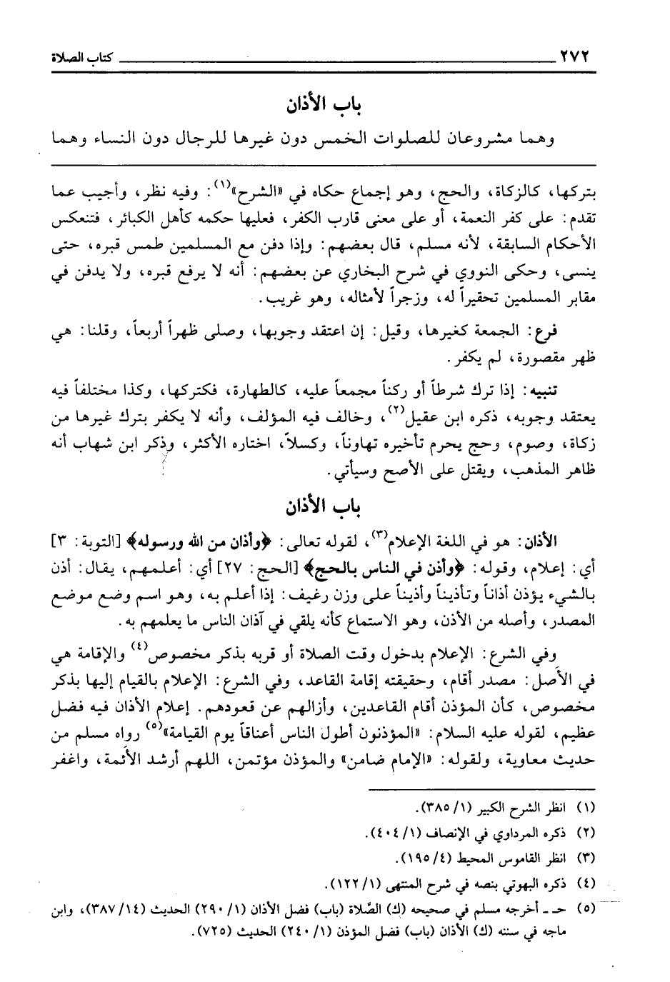بَابُ الْأَذَانِ وَهُمَا مَشْرُوعَانِ، لِلصَّلَوَاتِ الْخَمْسِ دُونَ غَيْرِهَا لِلرِّجَالِ دُونَ النِّسَاءِ،
