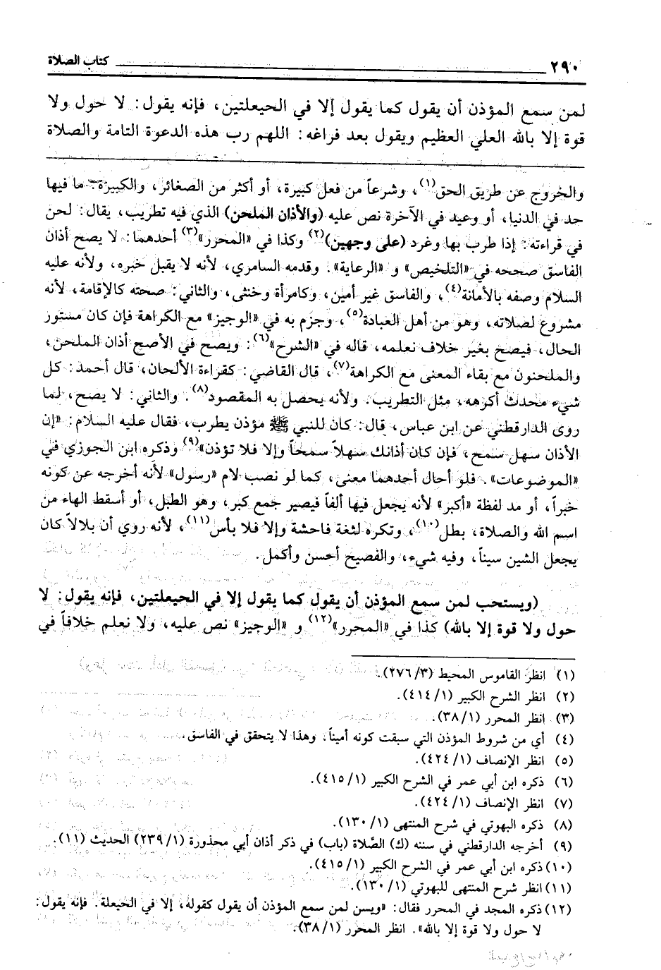 (وَيُسْتَحَبُّ لِمَنْ سَمِعَ الْمُؤَذِّنَ أَنْ يَقُولَ كَمَا يَقُولُ إِلَّا فِي الْحَيْعَلَتَيْنِ فَإِنَّهُ يَقُولُ: لَا حَوْلَ وَلَا قُوَّةَ إِلَّا بِاللَّهِ) كَذَا فِي " الْمُحَرَّرِ " و" الْوَجِيزِ " نَصَّ عَلَيْهِ، وَلَا نَعْلَمُ خِلَافًا فِي
