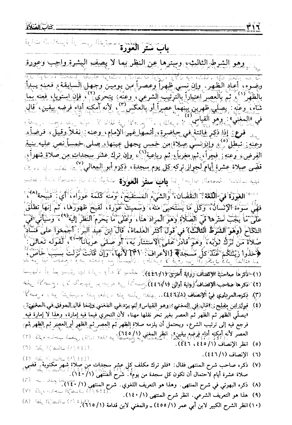 بَابُ سَتْرِ الْعَوْرَةِ الْعَوْرَةُ فِي اللُّغَةِ: النُّقْصَانُ، وَالشَّيْءُ الْمُسْتَقْبَحُ، وَمِنْهُ كَلِمَةُ عَوْرَاءَ أَيْ: قَبِيحَةٌ، فَهِيَ سَوْءَةُ الْإِنْسَانِ، وَكُلُّ مَا يُسْتَحْيَى مِنْهُ، وَسُمِّيَتْ عَوْرَةً لِقُبْحِ ظُهُورِهَا، ثُمَّ إِنَّهَا تُطْلَقُ عَلَى مَا يَجِبُ سَتْرُهَا فِي الصَّلَاةِ، وَهُوَ الْمُرَادُ هُنَا، وَعَلَى مَا يَحْرُمُ النَّظَرُ إِلَيْهِ، وَسَيَأْتِي فِي النِّكَاحِ (وَهُوَ الشَّرْطُ الثَّالِثُ) فِي قَوْلِ أَكْثَرِ الْعُلَمَاءِ، قَالَ ابْنُ عَبْدِ الْبَرِّ: أَجْمَعُوا عَلَى فَسَادِ صَلَاةِ مَنْ تَرَكَ ثَوْبَهُ، وَهُوَ قَادِرٌ عَلَى الِاسْتِتَارِ بِهِ، أَوْ صَلَّى عُرْيَانًا لِقَوْلِهِ تَعَالَى {خُذُوا زِينَتَكُمْ عِنْدَ كُلِّ مَسْجِدٍ} [الأعراف: 31] لِأَنَّهَا وَإِنْ كَانَتْ نَزَلَتْ بِسَبَبٍ خَاصٍّ