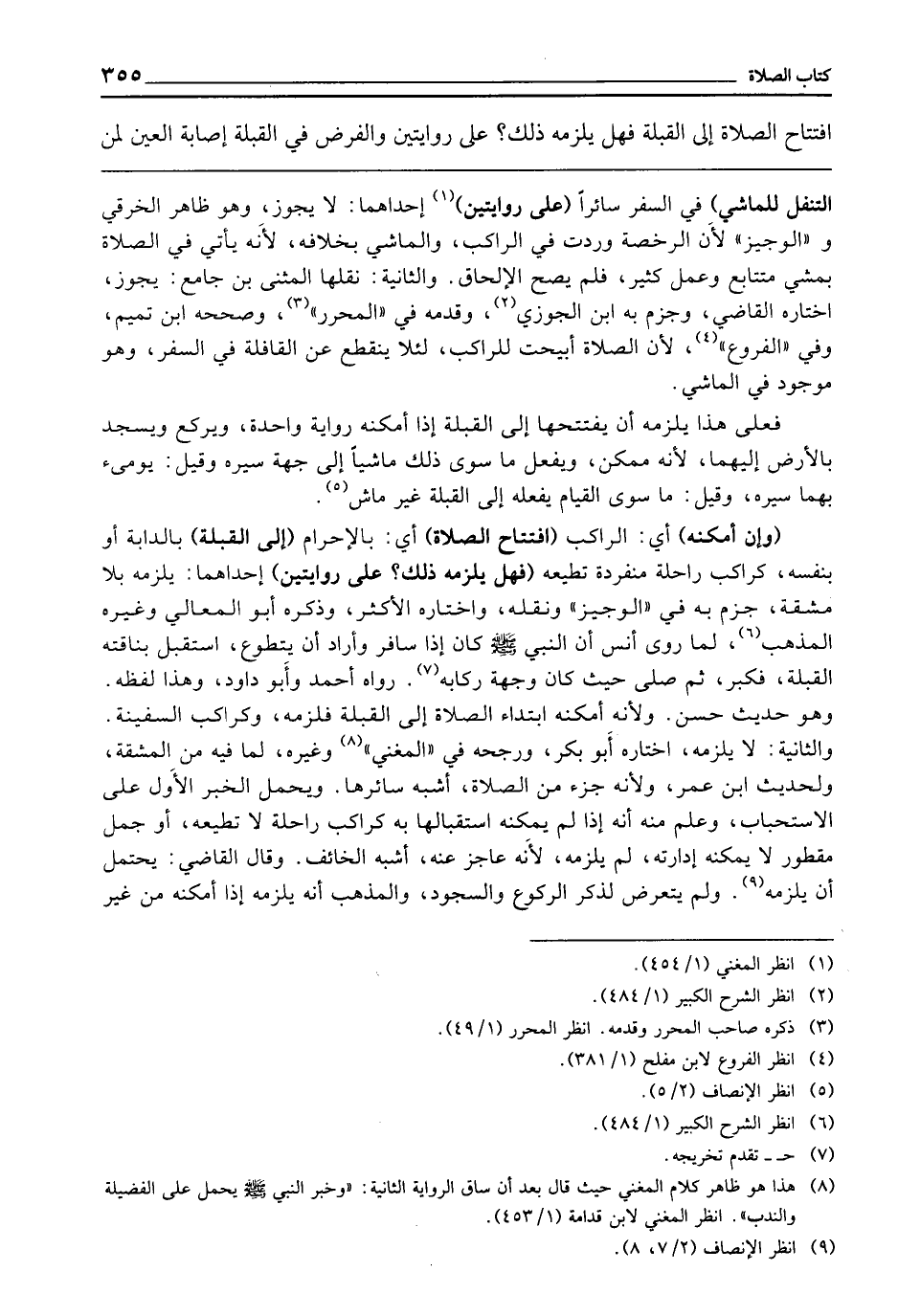 (وَإِنْ أَمْكَنَهُ) أَيِ: الرَّاكِبَ (افْتِتَاحُ الصَّلَاةِ) أَيْ: بِالْإِحْرَامِ (إِلَى الْقِبْلَةِ) بِالدَّابَّةِ أَوْ بِنَفْسِهِ كَرَاكِبِ رَاحِلَةٍ مُنْفَرِدَةٍ تُطِيعُهُ (فَهَلْ يَلْزَمُهُ ذَلِكَ عَلَى رِوَايَتَيْنِ) إِحْدَاهُمَا: يَلْزَمُهُ بِلَا مَشَقَّةٍ جَزَمَ بِهِ فِي " الْوَجِيزِ " وَنَقَلَهُ، وَاخْتَارَهُ الْأَكْثَرُ، وَذَكَرَهُ أَبُو الْمَعَالِي وَغَيْرُهُ الْمَذْهَبُ، لِمَا رَوَى أَنَسٌ «أَنَّ النَّبِيَّ - صَلَّى اللَّهُ عَلَيْهِ وَسَلَّمَ - كَانَ إِذَا سَافَرَ وَأَرَادَ أَنْ يَتَطَوَّعَ اسْتَقْبَلَ بِنَاقَتِهِ الْقِبْلَةَ، فَكَبَّرَ ثُمَّ صَلَّى حَيْثُ كَانَ وُجْهَةُ رِكَابِهِ» رَوَاهُ أَحْمَدُ، وَأَبُو دَاوُدَ، وَهَذَا لَفْظُهُ، وَهُوَ حَدِيثٌ حَسَنٌ، وَلِأَنَّهُ أَمْكَنَهُ ابْتِدَاءُ الصَّلَاةِ إِلَى الْقِبْلَةِ فَلَزِمَهُ، وكراكب السفينة، وَالثَّانِيَةُ: لَا يَلْزَمُهُ، اخْتَارَهُ أَبُو بَكْرٍ، وَرَجَّحَهُ فِي " الْمُغْنِي " وَغَيْرِهِ لِمَا فِيهِ مِنَ الْمَشَقَّةِ، وَلِحَدِيثِ ابْنِ عُمَرَ، وَلِأَنَّهُ جُزْءٌ مِنَ الصَّلَاةِ أَشْبَهَ سَائِرَهَا، وَيُحْمَلُ الْخَبَرُ الْأَوَّلُ عَلَى الِاسْتِحْبَابِ، وَعُلِمَ مِنْهُ أَنَّهُ إِذَا لَمْ يُمْكِنُهُ اسْتِقْبَالُهَا بِهِ كَرَاكِبِ رَاحِلَةٍ لَا تُطِيعُهُ، أَوْ جَمَلٍ مَقْطُورٍ لَا يُمْكِنُهُ إِدَارَتُهُ، لَمْ يَلْزَمْهُ، لِأَنَّهُ عَاجِزٌ عَنْهُ، أَشْبَهَ الْخَائِفَ، وَقَالَ الْقَاضِي: يُحْتَمَلُ أَنْ يَلْزَمَهُ، وَلَمْ يَتَعَرَّضْ لِذِكْرِ الرُّكُوعِ وَالسُّجُودِ، وَالْمَذْهَبُ أَنَّهُ يَلْزَمُهُ إِذَا أَمْكَنَهُ مِنْ غَيْرِ