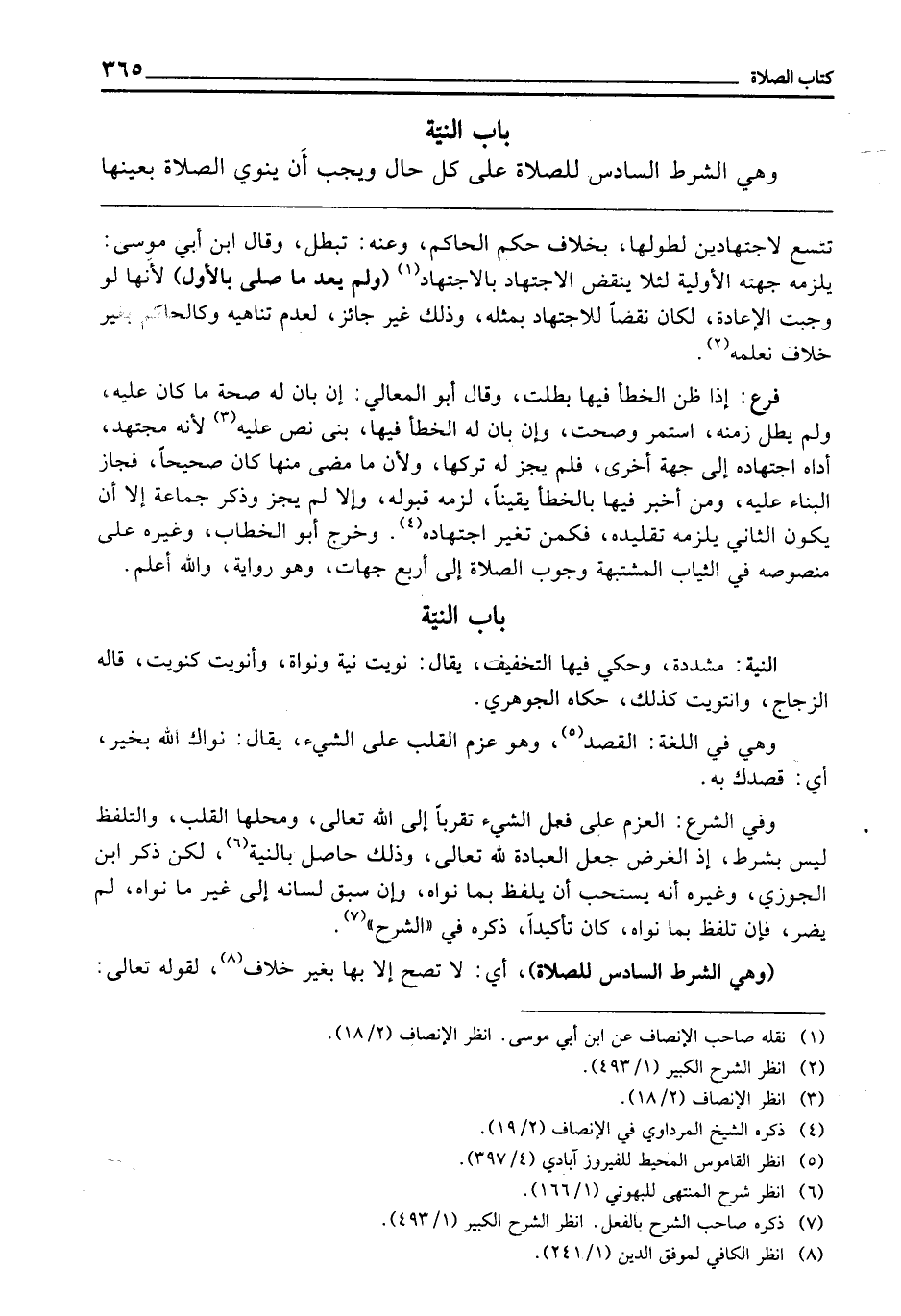 بَابُ النِّيَّةِ وَهِيَ الشَّرْطُ السَّادِسُ لِلصَّلَاةِ، عَلَى كُلِّ حَالٍ. وَيَجِبُ أَنْ يَنْوِيَ الصَّلَاةَ بِعَيْنِهَا