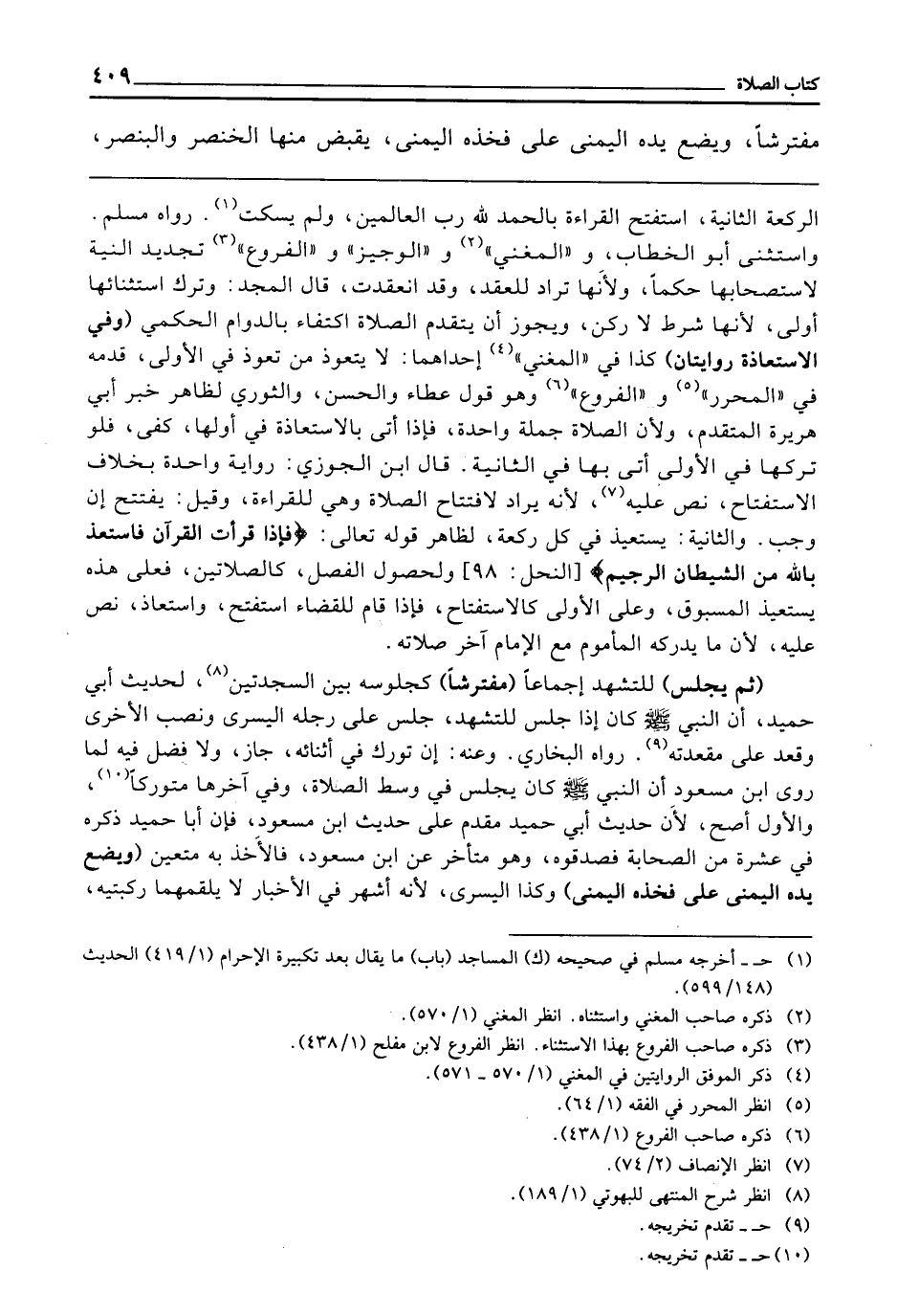 ـــــــــــــــــــــــــــــQالرَّكْعَةِ الثَّانِيَةِ اسْتَفْتَحَ الْقِرَاءَةَ بـ (الْحَمْدُ لِلَّهِ رَبِّ الْعَالَمِينَ) وَلَمْ يَسْكُتْ» رَوَاهُ مُسْلِمٌ، وَاسْتَثْنَى أَبُو الْخَطَّابِ، و" الْمُغْنِي " و" الْوَجِيزُ " و" الْفُرُوعُ " تَجْدِيدَ النِّيَّةِ لِاسْتِصْحَابِهَا حُكْمًا، وَلِأَنَّهَا تُرَادُ لِلْعَقْدِ، وَقَدِ انْعَقَدَتْ، قَالَ الْمَجْدُ: وَتَرْكُ اسْتِثْنَائِهَا أَوْلَى، لِأَنَّهَا شَرْطٌ لَا رُكْنٌ، وَيَجُوزُ أَنْ يَتَقَدَّمَ الصَّلَاةَ اكْتِفَاءً بِالدَّوَامِ الْحُكْمِيِّ (وَفِي الِاسْتِعَاذَةِ رِوَايَتَانِ) كَذَا فِي " الْمُغْنِي " إِحْدَاهُمَا: لَا يَتَعَوَّذُ مَنْ تَعَوَّذَ فِي الْأُولَى، قَدَّمَهُ فِي " الْمُحَرَّرِ " و" الْفُرُوعِ " وَهُوَ قَوْلُ عَطَاءٍ، وَالْحَسَنِ، وَالثَّوْرِيِّ لِظَاهِرِ خَبَرِ أَبِي هُرَيْرَةَ الْمُتَقَدِّمِ، وَلِأَنَّ الصَّلَاةَ جُمْلَةٌ وَاحِدَةٌ، فَإِذَا أَتَى بِالِاسْتِعَاذَةِ فِي أَوَّلِهَا كَفَى، فَلَوْ تَرَكَهَا فِي الْأُولَى أَتَى بِهَا فِي الثَّانِيَةِ، قَالَ ابْنُ الْجَوْزِيِّ: رِوَايَةٌ وَاحِدَةٌ بِخِلَافِ الِاسْتِفْتَاحِ، نُصَّ عَلَيْهِ، لِأَنَّهُ يُرَادُ لِافْتِتَاحِ الصَّلَاةِ، وَهِيَ لِلْقِرَاءَةِ، وَقِيلَ: يَفْتَتِحُ إِنْ وَجَبَ، وَالثَّانِيَةُ: يَسْتَعِيذُ فِي كُلِّ رَكْعَةٍ، لِظَاهِرِ قَوْله تَعَالَى {فَإِذَا قَرَأْتَ الْقُرْآنَ فَاسْتَعِذْ بِاللَّهِ مِنَ الشَّيْطَانِ الرَّجِيمِ} [النحل: 98] وَلِحُصُولِ الْفَصْلِ، كَالصَّلَاتَيْنِ، فَعَلَى هَذِهِ يَسْتَعِيذُ الْمَسْبُوقُ، وَعَلَى الْأُولَى كَالِاسْتِفْتَاحِ، فَإِذَا قَامَ لِلْقَضَاءِ اسْتَفْتَحَ، وَاسْتَعَاذَ، نُصَّ عَلَيْهِ، لِأَنَّ مَا يُدْرِكُهُ الْمَأْمُومُ مَعَ الْإِمَامِ آخِرِ صَلَاتِهِ.