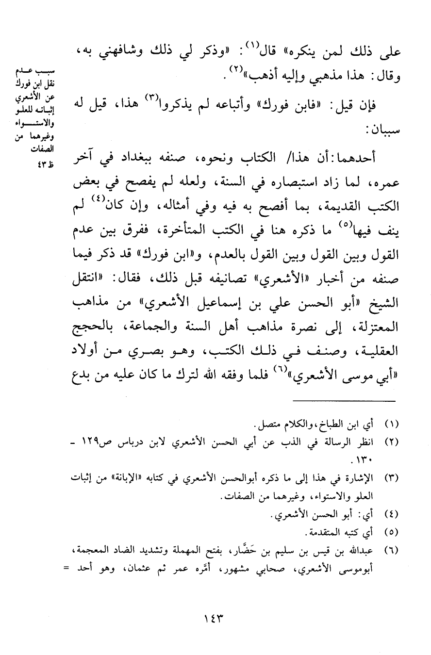فإن قيل: «فابن فورك» وأتباعه لم يذكروا هذا، قيل له سببان: