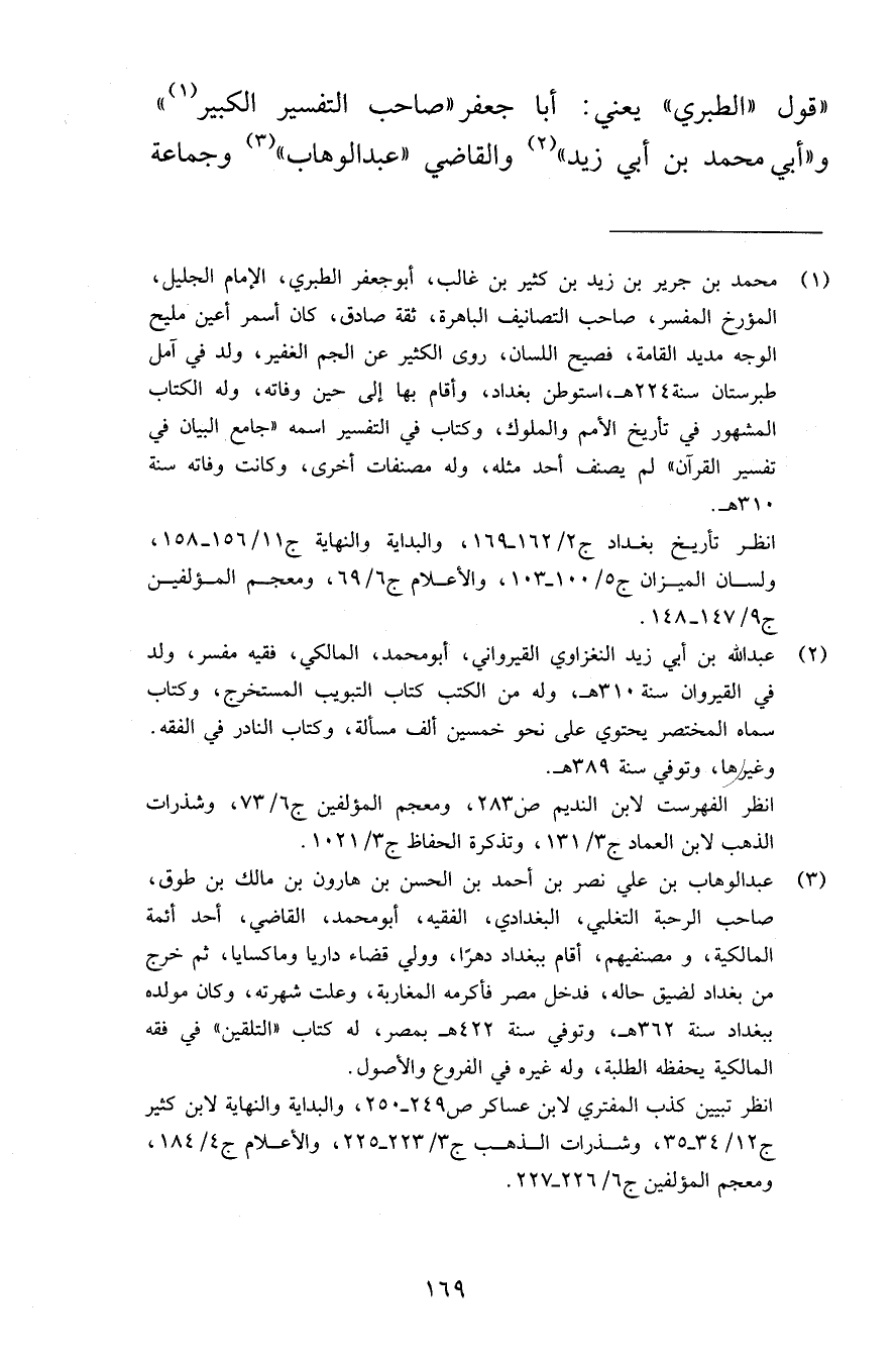 قول «الطبري» يعني: أبا جعفر «صاحب التفسير الكبير» و «أبي محمد بن أبي زيد» والقاضي «عبد الوهاب» وجماعة