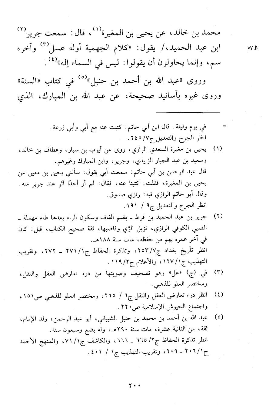محمد بن خالد، عن يحيى بن المغيرة، قال: سمعت جرير بن عبد الحميد، يقول: «كلام الجهمية أوله عسل وآخره سم، وإنما يحاولون أن يقولوا: ليس في السماء إله» .
