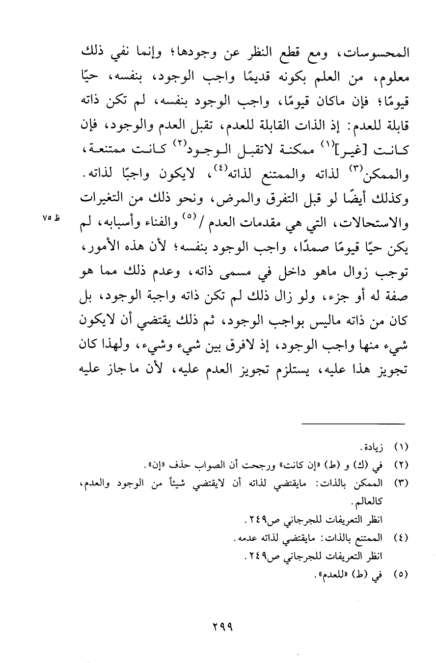 المحسوسات، ومع قطع النظر عن وجودها؛ وإنما نفي ذلك معلوم، من العلم بكونه قديمًا واجب الوجود، بنفسه، حيًّا قيومًا؛ فإن ما كان قيومًا، واجب الوجود بنفسه، لم تكن ذاته قابلة للعدم: إذ الذات القابلة للعدم، تقبل العدم والوجود، فإن كانت [غير] ممكنة لا تقبل الوجود كانت ممتنعة، والممكن لذاته والممتنع لذاته، لا يكون واجبًا لذاته. وكذلك أيضًا لو قبل التفرق والمرض، ونحو ذلك من التغيرات والاستحالات، التي هي مقدمات العدم والفناء وأسبابه، لم يكن حيًّا قيومًا صمدًا، واجب الوجود بنفسه؛ لأن هذه الأمور، توجب زوال ما هو داخل في مسمى ذاته، وعدم ذلك مما هو صفة له أو جزء، ولو زال ذلك لم تكن ذاته واجبة الوجود، بل كان من ذاته ما ليس بواجب الوجود، ثم ذلك يقتضي أن لا يكون شيء منها واجب الوجود، إذ لا فرق بين شيء وشيء، ولهذا كان تجويز هذا عليه، يستلزم تجويز العدم عليه، لأن ما جاز عليه