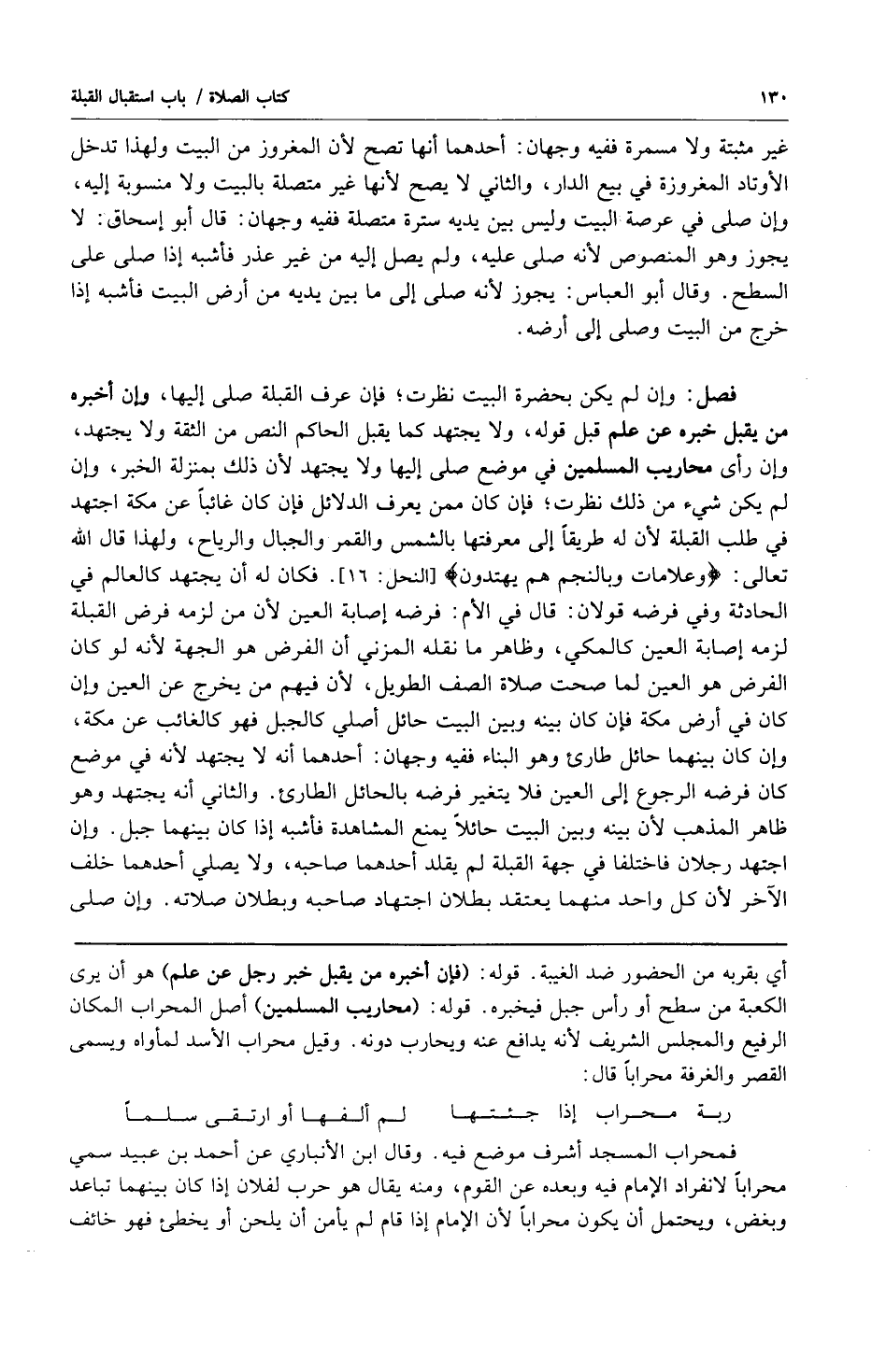فصل: وإن لم يكن بحضرة البيت نظرت فإن عرف القبلة صلى إليها وإن أخبره من يقبل خبره عن علم قبل قوله ولا يجتهد كما يقبل الحاكم النص من الثقة ولا يجتهد وإن رأى محاريب المسلمين في موضع صلى إليها ولا يجتهد لأن ذلك بمنزلة الخبر وإن لم يكن شيء من ذلك نظرت فإن كان ممن يعرف الدلائل فإن كان غائباً عن مكة اجتهد في طلب القبلة لأن له طريقاً إلى معرفتها بالشمس والقمر والجبال والرياح ولهذا قال الله تعالى: {وَعَلامَاتٍ وَبِالنَّجْمِ هُمْ يَهْتَدُونَ} [النحل:16] فكان له أن يجتهد كالعالم في الحادثة وفي فرضه قولان: قال في الأم: فرضه إصابة العين لأن من لزمه فرض القبلة لزمه إصابة العين كالمكي وظاهر ما نقله المزني أن الفرض هو الجهة لأنه لو كان الفرض هو العين لما صحت صلاة الصف الطويل لأن فيهم من يخرج عن العين وإن كان في أرض مكة فإن كان بينه وبين البيت حائل أصلي كالجبل فهو كالغائب عن مكة وإن كان بينهما حائل طارئ وهو البناء ففيه وجهان: أحدهما أنه لا يجتهد لأنه في موضع كان فرضه الرجوع إلى العين فلا يتغير فرضه بالحائل الطارئ والثاني أنه يجتهد وهو ظاهر المذهب لأن بينه وبين البيت حائلاً يمنع المشاهدة فأشبه إذا كان بينهما جبل وإن اجتهد رجلان فاختلفا في جهة القبلة لم يقلد أحدهما صاحبه ولا يصلي أحدهما خلف الآخر لأن كل واحد منهما يعتقد بطلان اجتهاد صاحبه وبطلان صلاته وإن صلى