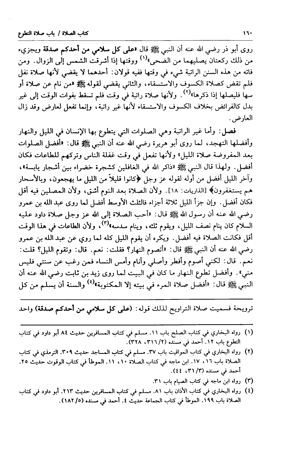 1 رواه البخاري في كتاب الصلح باب 11. مسلم في كتاب المسافرين حديث 84 أبو داود في كتاب التطوع باب 12. أحمد في مسنده "2/316، 328".