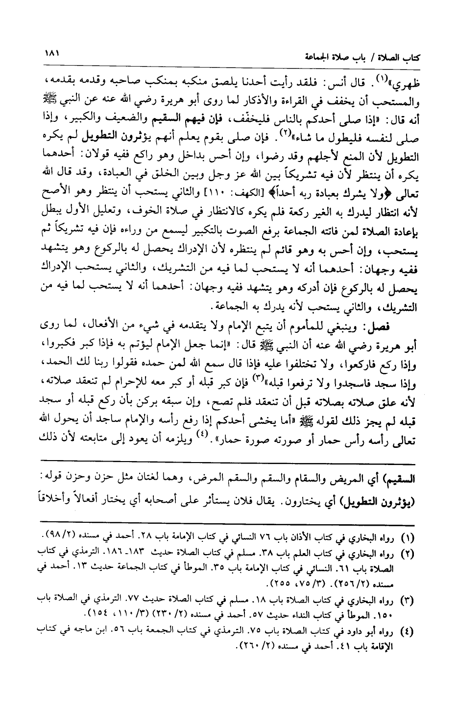 1رواه البخاري في كتاب الأذان باب 76 النسائي في كتاب الإمامة باب 28. أحمد في مسنده "2/98".