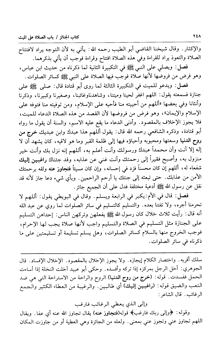 فصل: قال في الأم: يكبر في الرابعة ويسلم وقال في البويطي يقول: اللهم لا تحرمنا أجره ولا تفتنا بعده والتسليم كالتسليم في سائر الصلوات لما روي عن عبد الله أنه قال: ثلاث خلال كان رسول الله صلى الله عليه وسلم يفعلهن وتركهن الناس: إحداهن التسليم على الجنازة مثل التسليم في الصلاة والتسليم واجب لأنها صلاة يجب لها الإحرام فوجب الخروج منها بالسلام كسائر الصلوات وهل يسلم تسليمة أو تسليمتين على ما ذكرناه في سائر الصلوات.