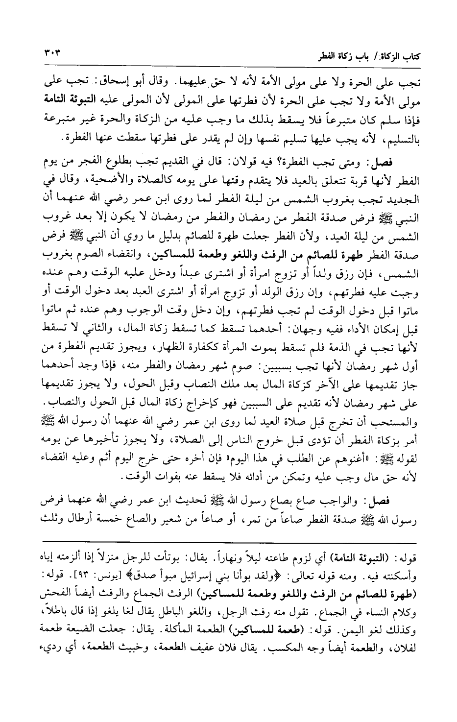 فصل: ومتى تجب الفطرة؟ فيه قولان: قال في القديم تجب بطلوع الفجر من يوم الفطر لأنها قربة تتعلق بالعيد فلا يتقدم وقتها على يومه كالصلاة والأضحية وقال في الجديد تجب بغروب الشمس من ليلة الفطر لما روى ابن عمر رضي الله عنهما أن النبي صلى الله عليه وسلم فرض صدقة الفطر من رمضان والفطر من رمضان لا يكون إلا بعد غروب الشمس من ليلة العيد ولأن الفطر جعلت طهرة للصائم بدليل أن ما روي أن النبي صلى الله عليه وسلم فرض صدقة الفطر طهرة للصائم من الرفث واللغو وطعمة للمساكين وانقضاء الصوم بغروب الشمس فإن رزق ولداً أو تزوج امرأة أو اشترى عبداً ودخل عليه الوقت وهم عنده وجبت عليه فطرتهم وإن رزق الولد أو تزوج امرأة أو اشترى العبد بعد دخول الوقت أو ماتوا قبل دخول الوقت لم تجب فطرتهم وإن دخل وقت الوجوب وهم عنده ثم ماتوا قبل إمكان الأداء ففيه وجهان: أحدهما تسقط كما تسقط زكاة المال والثاني لا تسقط لأنها تجب في الذمة فلم تسقط بموت المرأة ككفارة الظهار ويجوز تقديم الفطرة من أول شهر رمضان لأنها تجب بسببين: صوم شهر رمضان والفطر منه فإذا وجد أحدهما جاز تقديمها على الآخر كزكاة المال بعد ملك النصاب وقبل الحول ولا يجوز تقديمهما على شهر رمضان لأنه تقديم على السببين فهو كإخراج زكاة المال قبل الحول والنصاب والمستحب أن تخرج قبل صلاة العيد لما روى ابن عمر رضي الله عنهما أن رسول الله صلى الله عليه وسلم أمر بزكاة الفطر أن يؤدى قبل خروج الناس إلى الصلاة ولا يجوز تأخيرها عن يومه لقوله صلى الله عليه وسلم: "أغنوهم عن الطلب في هذا اليوم" فإن أخره حتى خرج اليوم أثم وعليه القضاء لأنه حق مال وجب عليه وتمكن من أدائه فلا يسقط عنه بفوات الوقت.