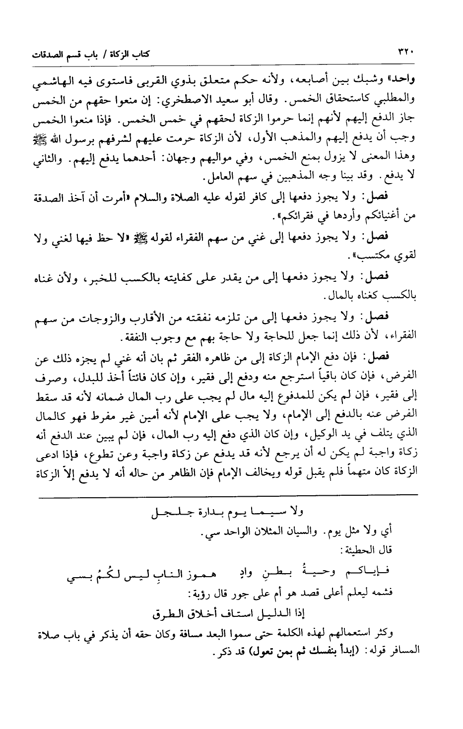 واحد" وشبك بين أصابعه ولأنه حكم متعلق بذوي القربى فاستوى فيه الهاشمي والمطلبي كاستحقاق الخمس وقال أبو سعيد الاصطخري: إن منعوا حقهم من الخمس جاز الدفع إليهم لأنهم إنما حرموا الزكاة لحقهم في خمس الخمس فإذا منعوا الخمس وجب أن يدفع إليهم والمذهب الأول لأن الزكاة حرمت عليهم لشرفهم برسول الله صلى الله عليه وسلم وهذا المعنى لا يزول بمنع الخمس وفي مواليهم وجهان: أحدهما يدفع إليهم والثاني لا يدفع وقد بينا وجه المذهبين في سهم العامل.