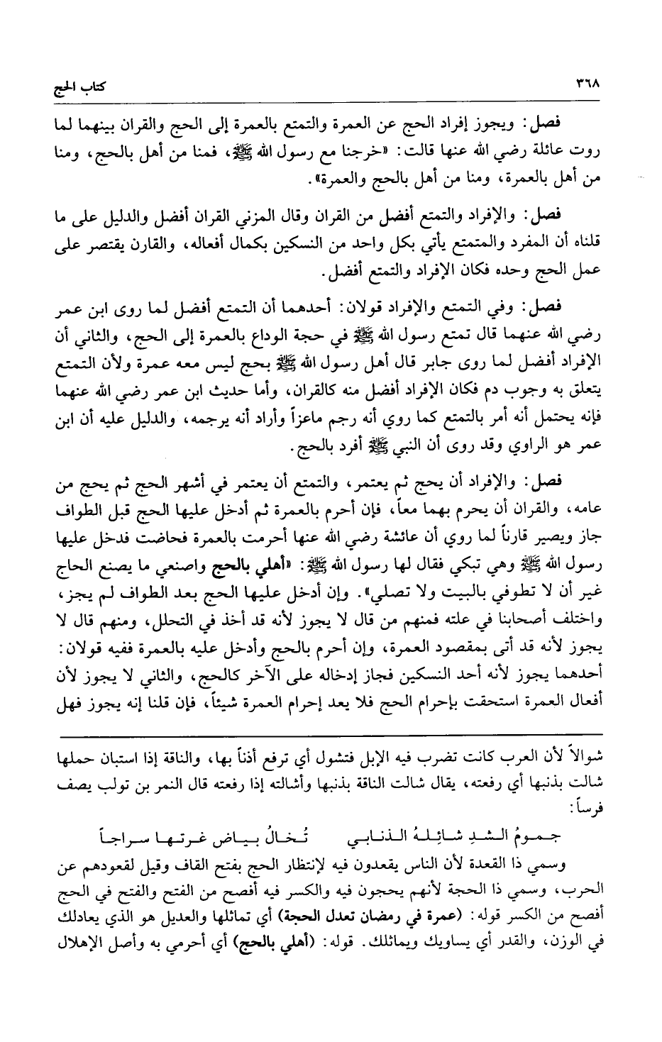 فصل: وفي التمتع والإفراد قولان: أحدهما أن التمتع أفضل لما روى ابن عمر رضي الله عنهما قال تمتع رسول الله صلى الله عليه وسلم في حجة الوداع بالعمرة إلى الحج والثاني أن الإفراد أفضل لما روى جابر قال أهل رسول الله صلى الله عليه وسلم بحج ليس معه عمرة ولأن التمتع يتعلق به وجوب دم فكان الإفراد أفضل منه كالقران وأما حديث ابن عمر رضي الله عنهما فإنه يحتمل أنه أمر بالتمتع كما روي أنه رجم ماعزاً وأراد أنه يرجمه والدليل عليه أن ابن عمر هو الراوي وقد روي أن النبي صلى الله عليه وسلم أفرد بالحج.