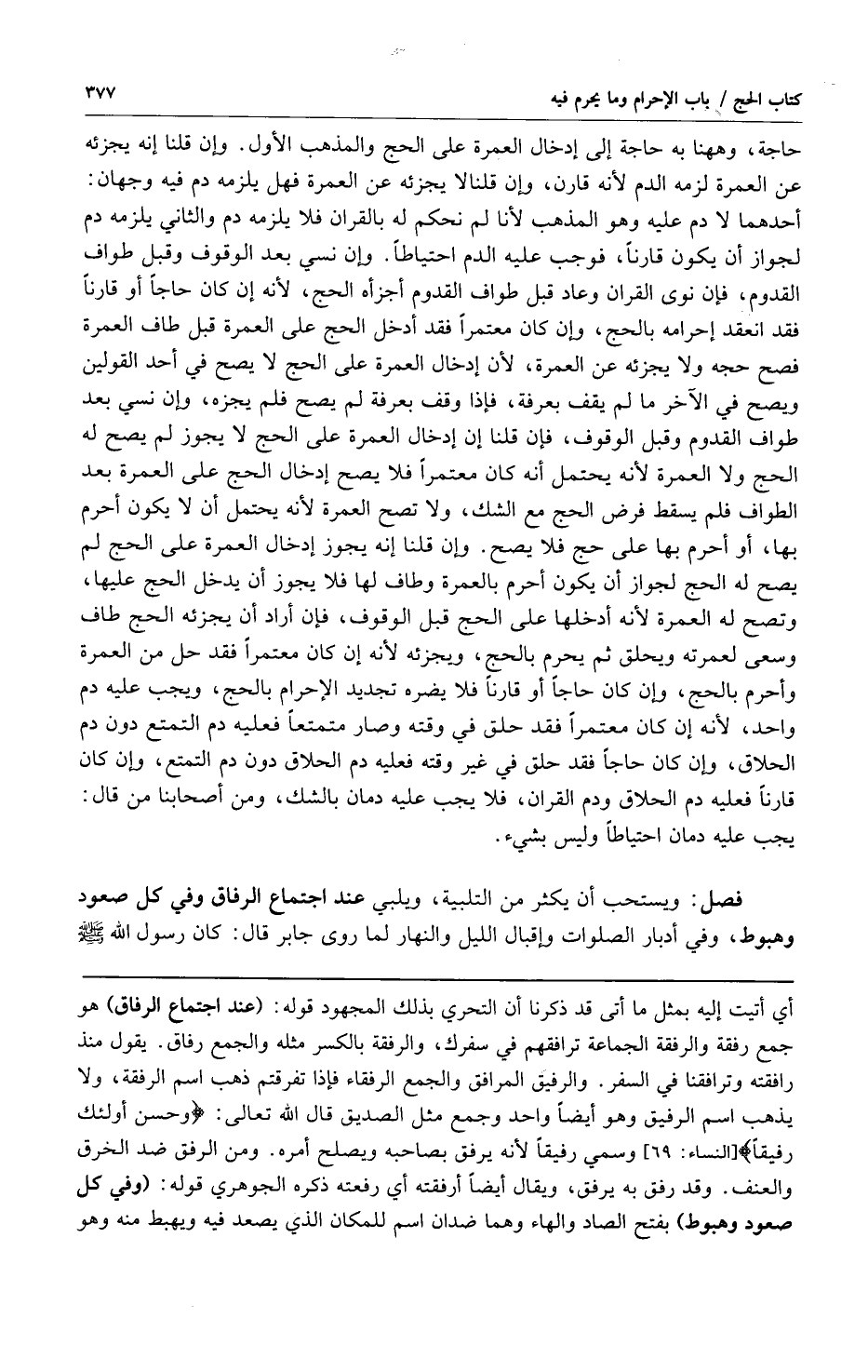 حاجة وهاهنا به حاجة إلى إدخال العمرة على الحج والمذهب الأول وإن قلنا إنه يجزئه عن العمرة لزمه الدم لأنه قارن وإن قلنا لا يجزئه عن العمرة هل يلزمه دم ففيه وجهان: أحدهما لا دم عليه وهو المذهب لأنا لم نحكم له بالقران فلا يلزمه دم والثاني يلزمه دم لجواز أنه يكون قارناً فوجب عليه الدم احتياطاً وإن نسي بعد الوقوف وقبل طواف القدوم فإن نوى القران وعاد قبل طواف القدوم أجزأه الحج لأنه إن كان حاجاً أو قارناً فقد إنعقد إحرامه بالحج وإن كان معتمراً فقد أدخل الحج على العمرة قبل طواف العمرة فصح حجه ولا يجزئه عن العمرة لأن إدخال العمرة على الحج لا يصح في أحد القولين ويصح في الآخر ما لم يقف بعرفة فإذا وقف بعرفة لم يصح فلم يجزه وإن نسي بعد طواف القدوم وقبل الوقوف فإن قلنا إن إدخال العمرة على الحج لا يجوز لم يصح له الحج ولا العمرة لأنه يحتمل أنه كان معتمراً فلا يصح إدخال الحج على العمرة بعد الطواف فلم يسقط فرض الحج مع الشك ولا تصح العمرة لأنه يحتمل أن لا يكون أحرم بها أو أحرم بها على حج فلا يصح وإن قلنا إنه يجوز إدخال العمرة على الحج لم يصح له الحج لجواز أن يكون أحرم بالعمرة وطاف لها فلا يجوز أن يدخل الحج عليها وتصح له العمرة لأنه أدخلها على الحج قبل الوقوف فإن أراد أن يجزئه الحج طاف وسعى لعمرته ويحلق ثم يحرم بالحج ويجزئه لأنه إن كان معتمراً فقد حل من العمرة وأحرم بالحج وإن كان حاجاً أو قارناً فلا يضره تجديد الإحرام بالحج ويجب عليه دم واحد لأنه إن كان معتمراً فقد حلق في وقته وصار متمتعاً فعليه دم التمتع دون الدم الحلاق وإن كان حاجاً فقد حلق في غير وقته فعليه دم الحلاق دون دم التمتع وإن كان قارناً فعليه دم الحلاق ودم القران فلا يجب عليه دمان بالشك ومن أصحابنا من قال: يجب عليه دمان احتياطاً وليس بشيء.