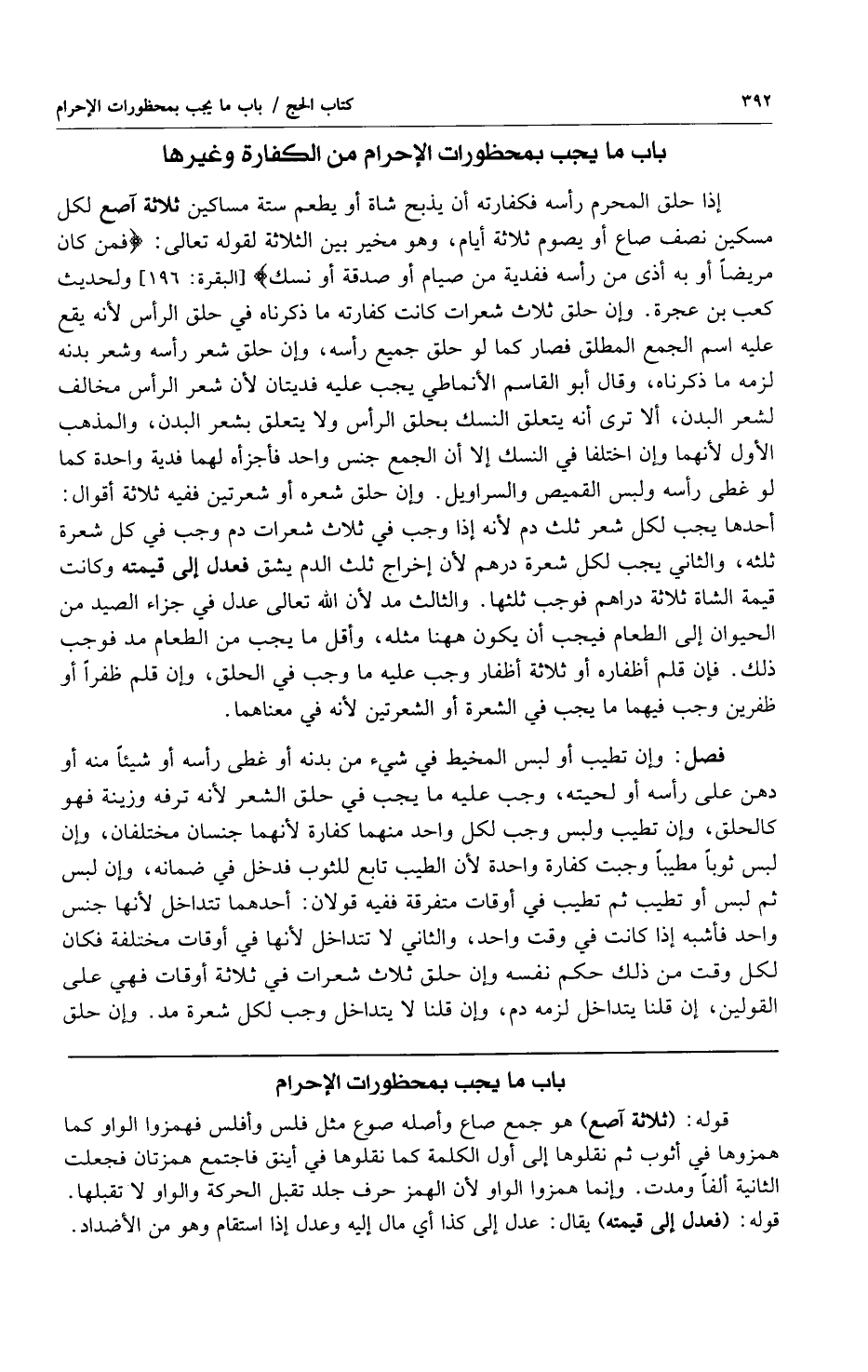 باب ما يجب بمحظورات الإحرام من الكفارة وغيرها