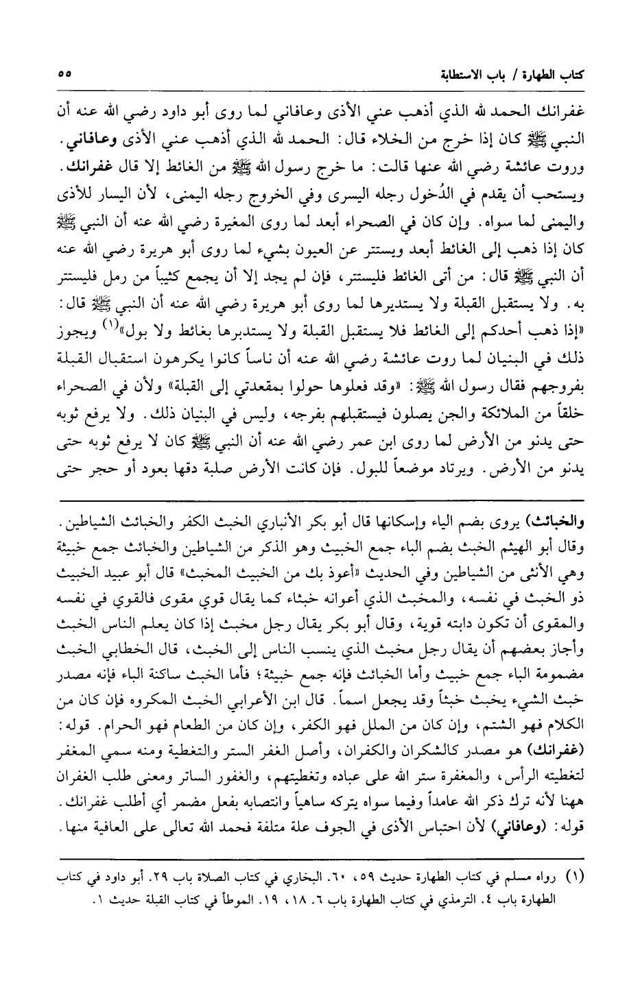 1 رواه مسلم في كتاب الطهارة حديث 59، 60. البخاري في كتاب الصلاة 29. أبو داود في كتاب الطهارة باب 4. الترمذي في كتاب الطهارة باب 6. 18، 19. الموطأ في كتاب القبلة حديث 1.
