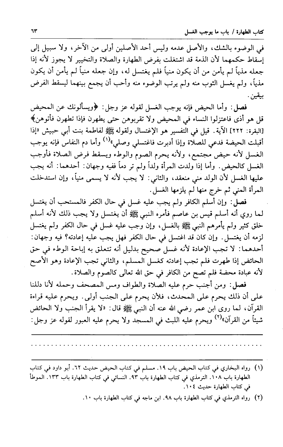 1رواه البخاري في كتاب الحيض باب 19. مسلم في كتاب الحيض حديث 62. أبو داود في كتاب الطهارة باب 108. الترمذي في كتاب الطهارة باب 93. النسائي في كتاب الطهارة باب 133. الموطأ في كتاب الطهارة حديث 104.