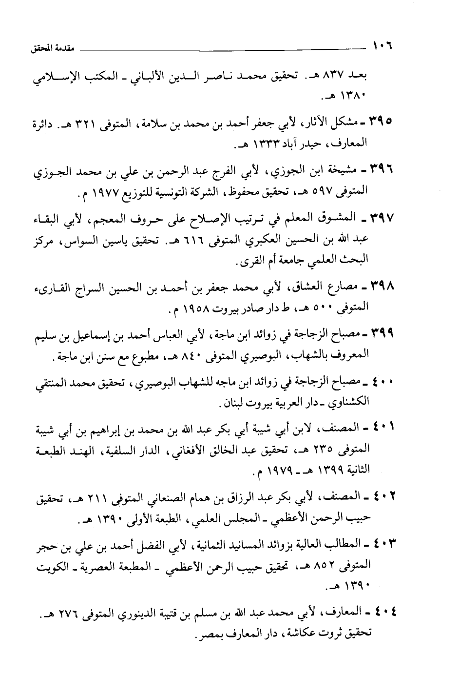 401- المصنف، لابن أبي شيبة أبي بكر عبد الله بن محمد بن إبراهيم بن أبي شيبة المتوفى 235 هـ، تحقيق عبد الخالق الأفغاني، الدار السلفية، الهند الطبعة الثانية 1399 هـ- 1979 م.