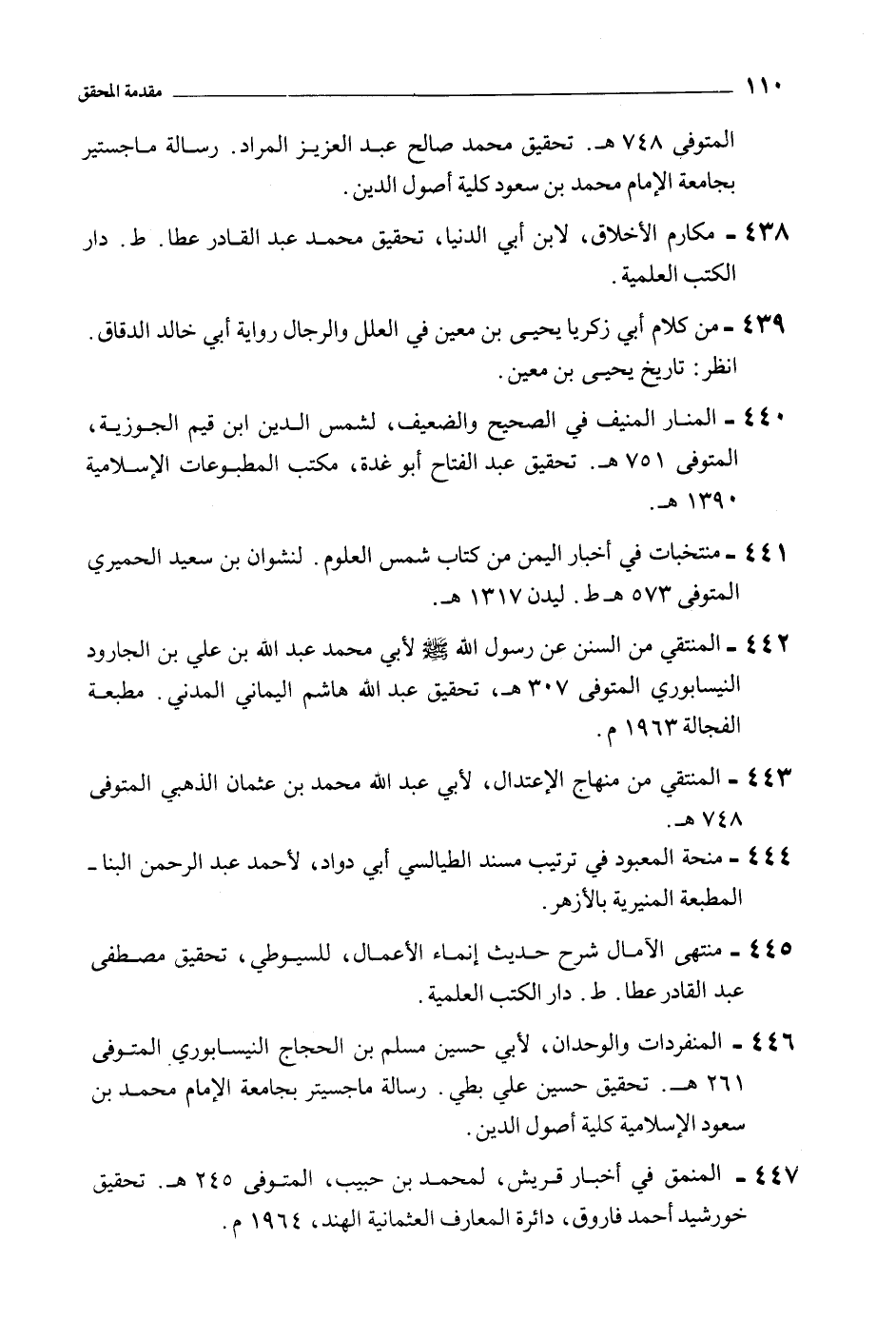 440- المنار المنيف في الصحيح والضعيف، لشمس الدين ابن قيم الجوزية، المتوفى 751 هـ. تحقيق عبد الفتاح أبو غدة، مكتب المطبوعات الإسلامية 1390 هـ.
