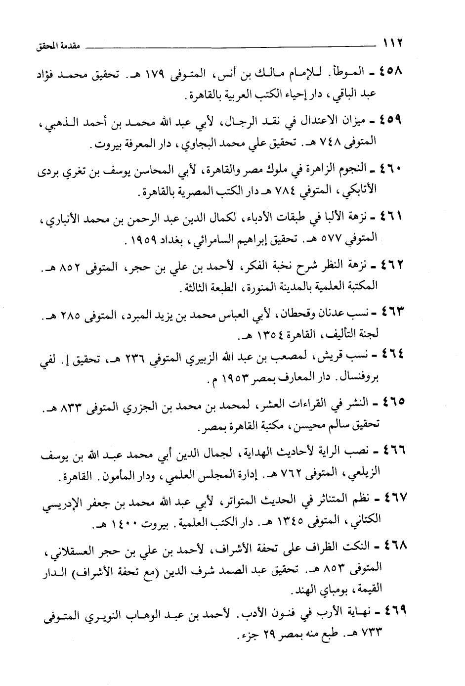 458- الموطأ. للإمام مالك بن أنس، المتوفى 179 هـ. تحقيق محمد فؤاد عبد الباقي، دار إحياء الكتب العربية بالقاهرة.