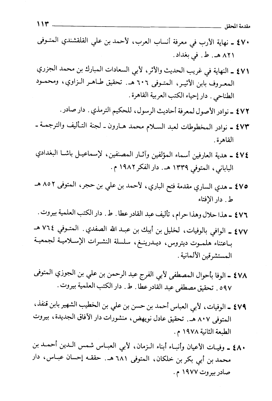 476- هذا حلال وهذا حرام، تأليف عبد القادر عطا. ط. دار الكتب العلمية بيروت 477- الوافي بالوفيات، لخليل بن أيبك بن عبد الله الصفدي. المتوفى 764 هـ باعتناء هلموت ديتروس، ديدرينغ، سلسلة النشرات الإسلامية لجمعية المستشرقين الألمانية.