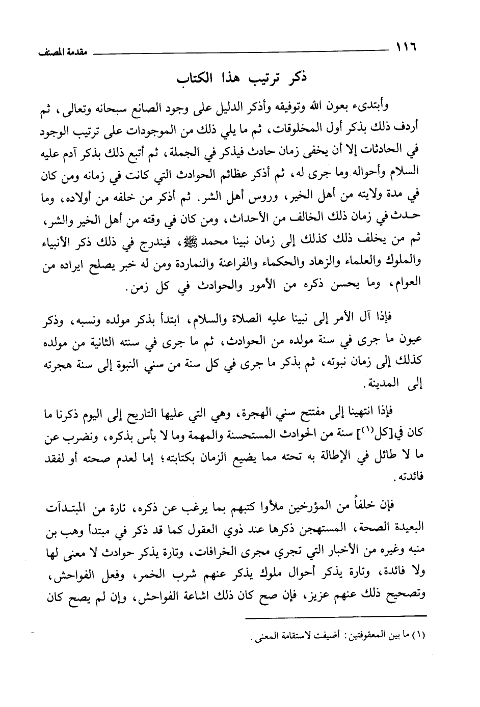 فَإِذَا انتهينا إِلَى مفتتح سني الهجرة، وَهِيَ الَّتِي عَلَيْهَا التاريخ إِلَى اليوم ذَكَرْنَا مَا كَانَ فِي [كُل [1]] سَنَة من الحوادث المستحسنة والمهمة وَمَا لا بأس بذكره، ونضرب عَن مَا لا طائل فِي الإطالة بِهِ تحته مِمَّا يضيع الزمان بكتابته، إِمَّا لعدم صحته أَوْ لفقد فائدته.