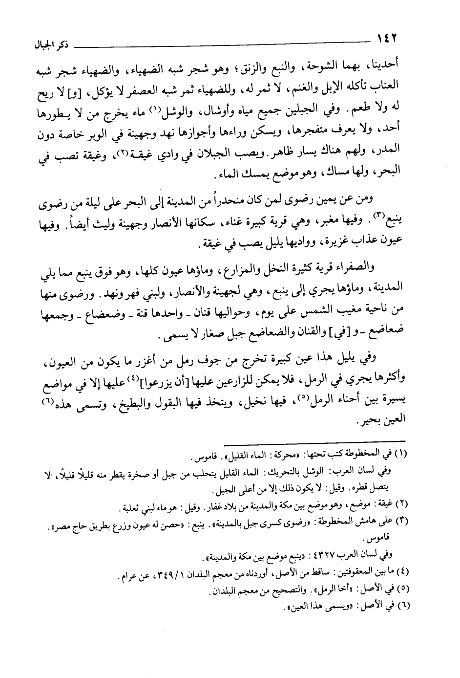 [3] على هامش المخطوطة: «رضوى كسرى جبل بالمدينة» . ينبع: «حصن له عيون وزرع بطريق حاج مصر» .