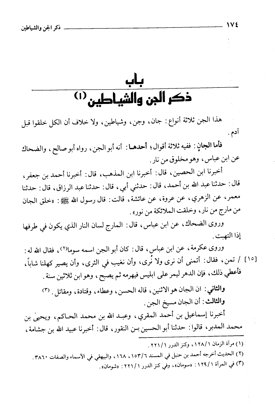 هَذَا الجن ثلاثة أنواع: جان، وجن، وشياطين، ولا خلاف أَن الكل خلقوا قبل آدَم.