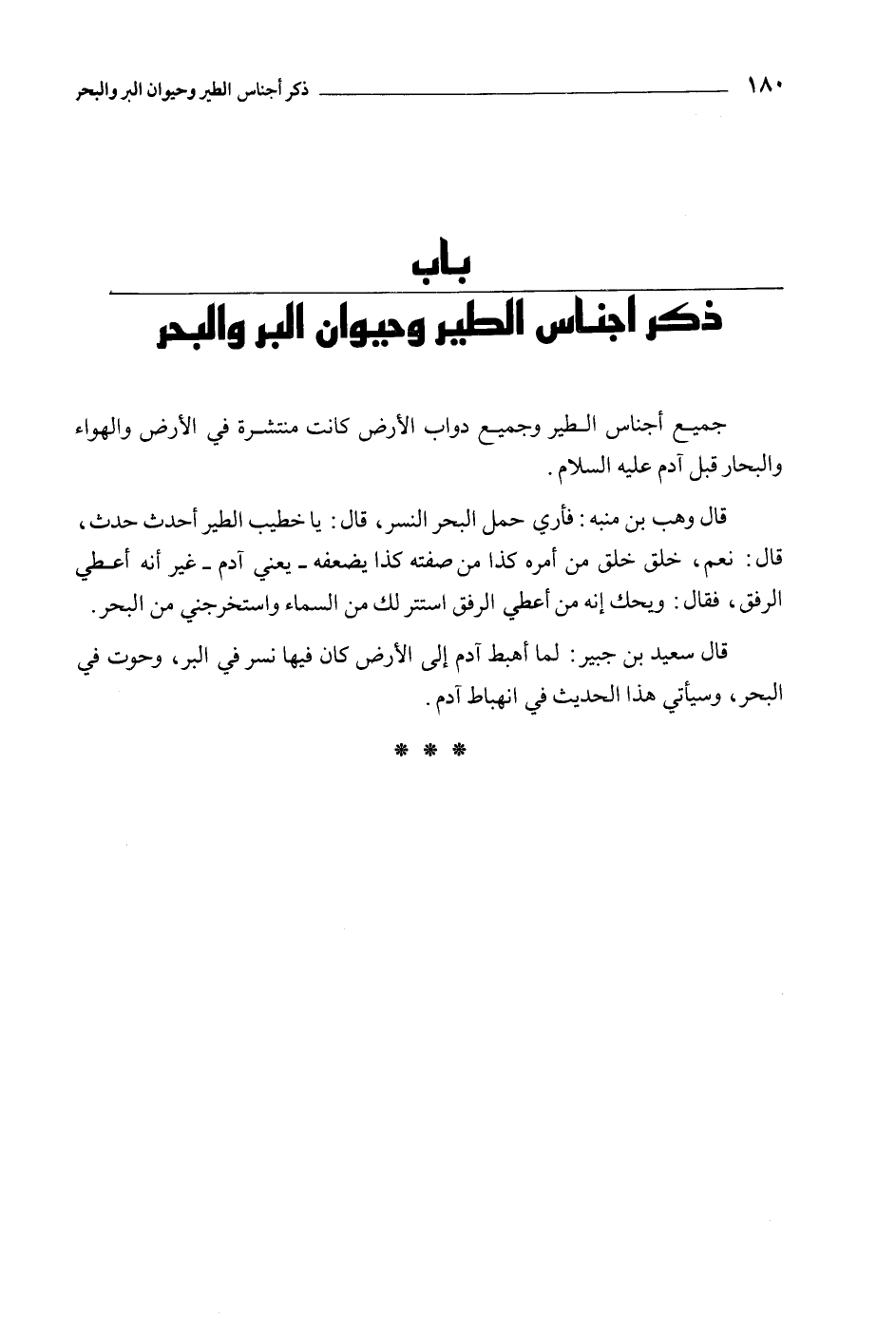 بَاب ذكر أجناس الطير وحيوان البر والبحر