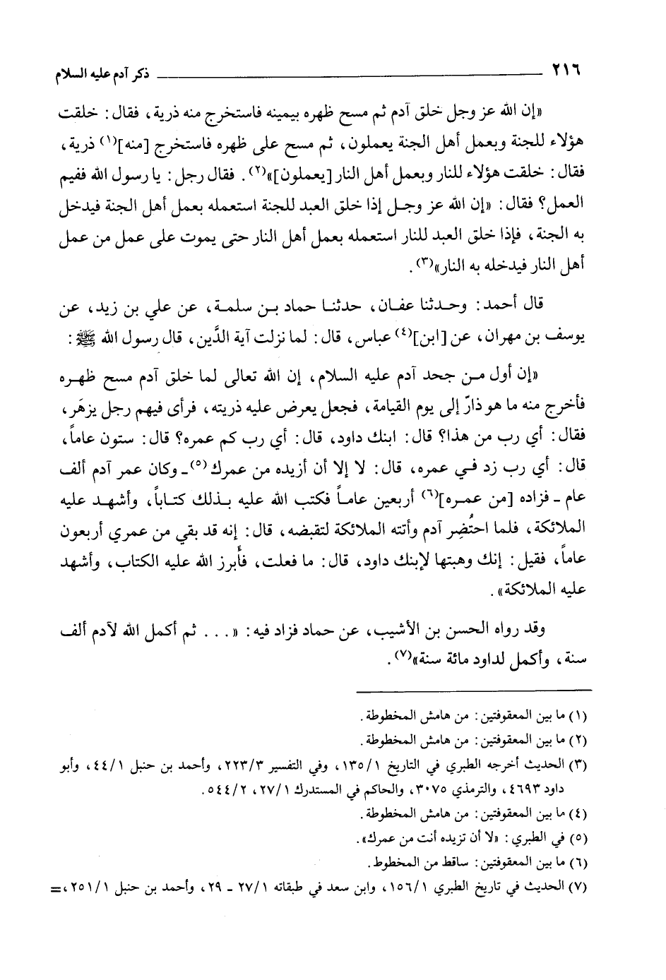 [3] الحديث أخرجه الطبري في التاريخ 1/ 135، وفي التفسير 3/ 223، وأحمد بن حنبل 1/ 44، وأبو داود 4693، والترمذي 3075، والحاكم في المستدرك 1/ 27، 2/ 544.